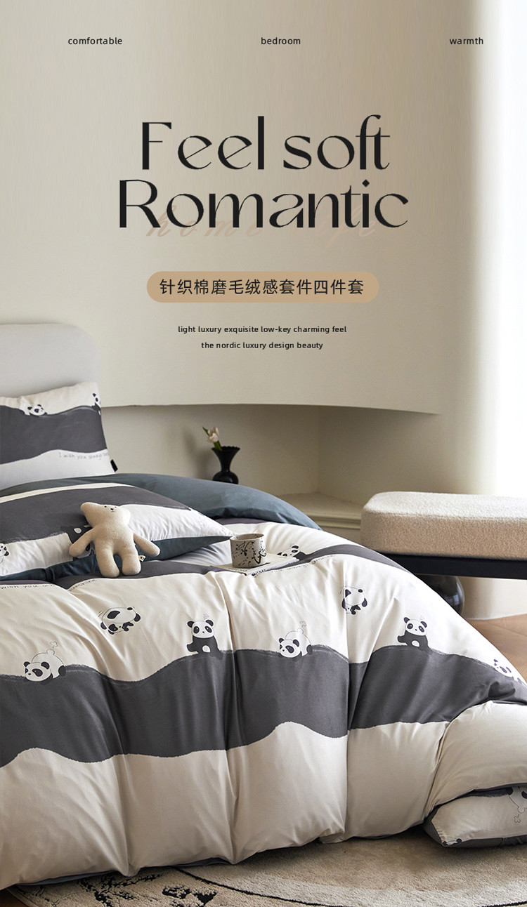凡客 2023新款针织棉磨毛绒感四件套 嗨熊猫