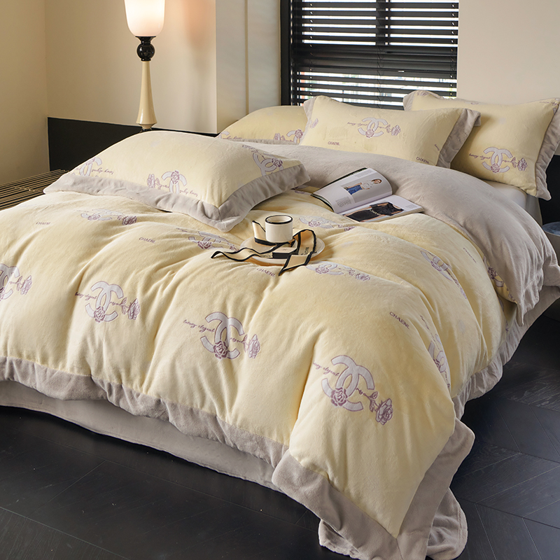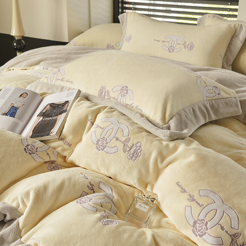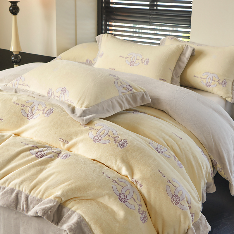 商品名称:榻尚家居 2023秋冬新款高克重牛奶绒四件套--闻香系列 闻香 鹅暖黄