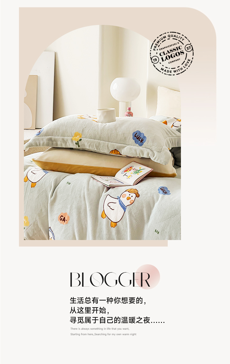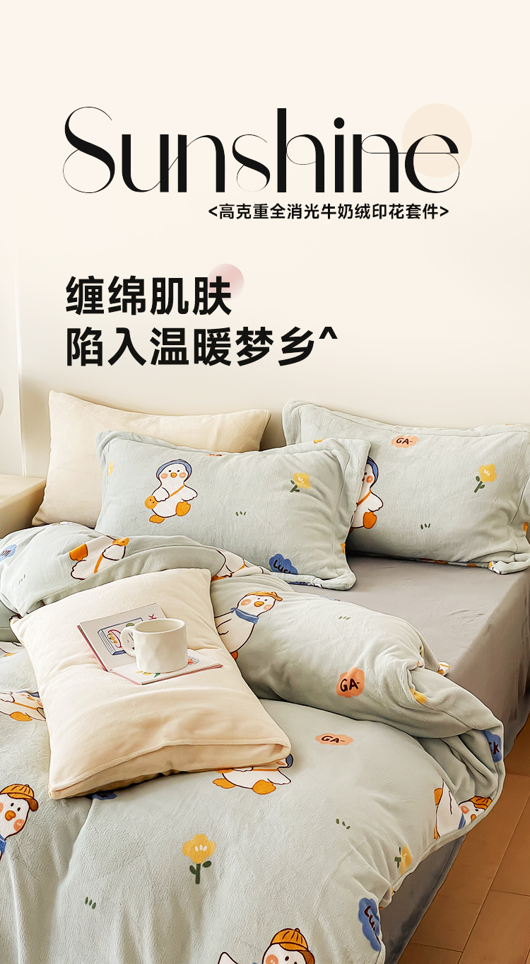 当前位置: 91家纺网 > 商品网购 > 床品套件 > 四件套 > 牛奶绒四件套 > 时光里 2023新款全消光加厚牛奶绒印花四件套 顽皮鸭-蓝