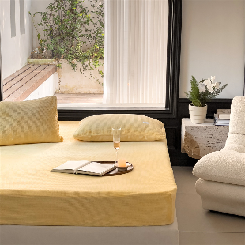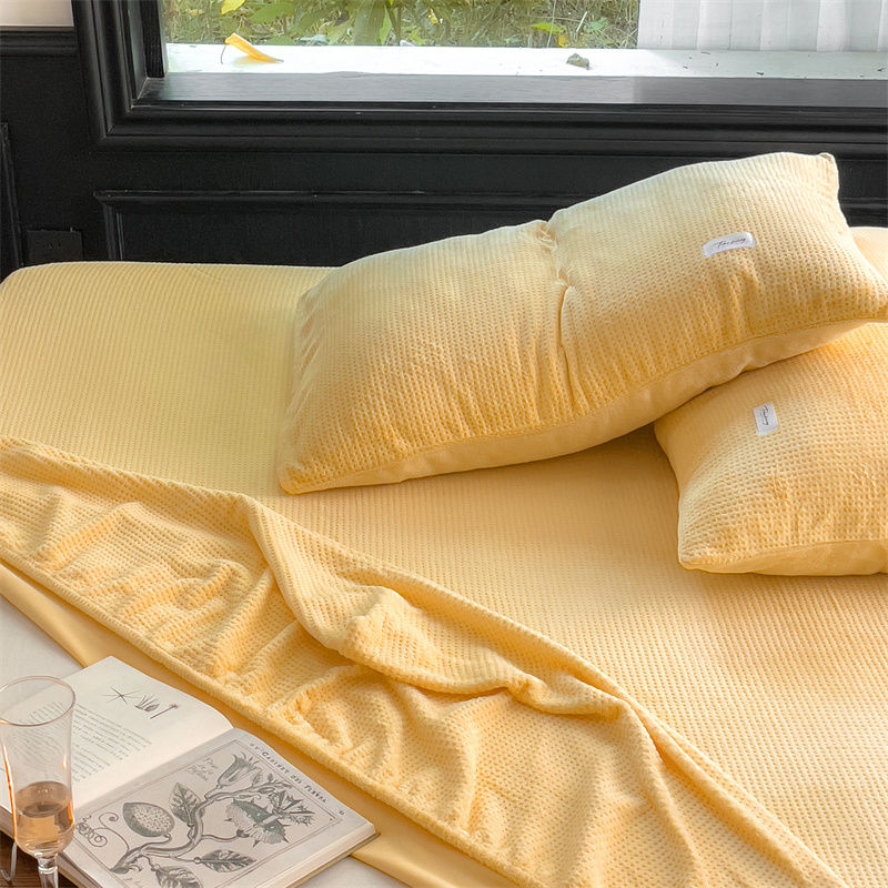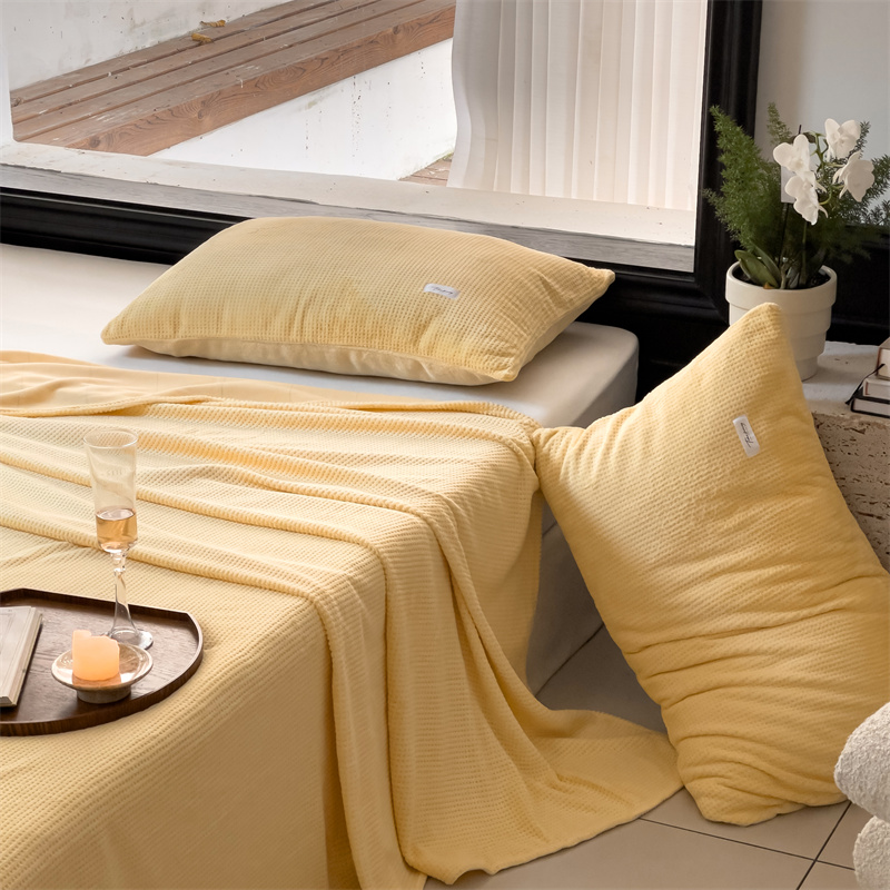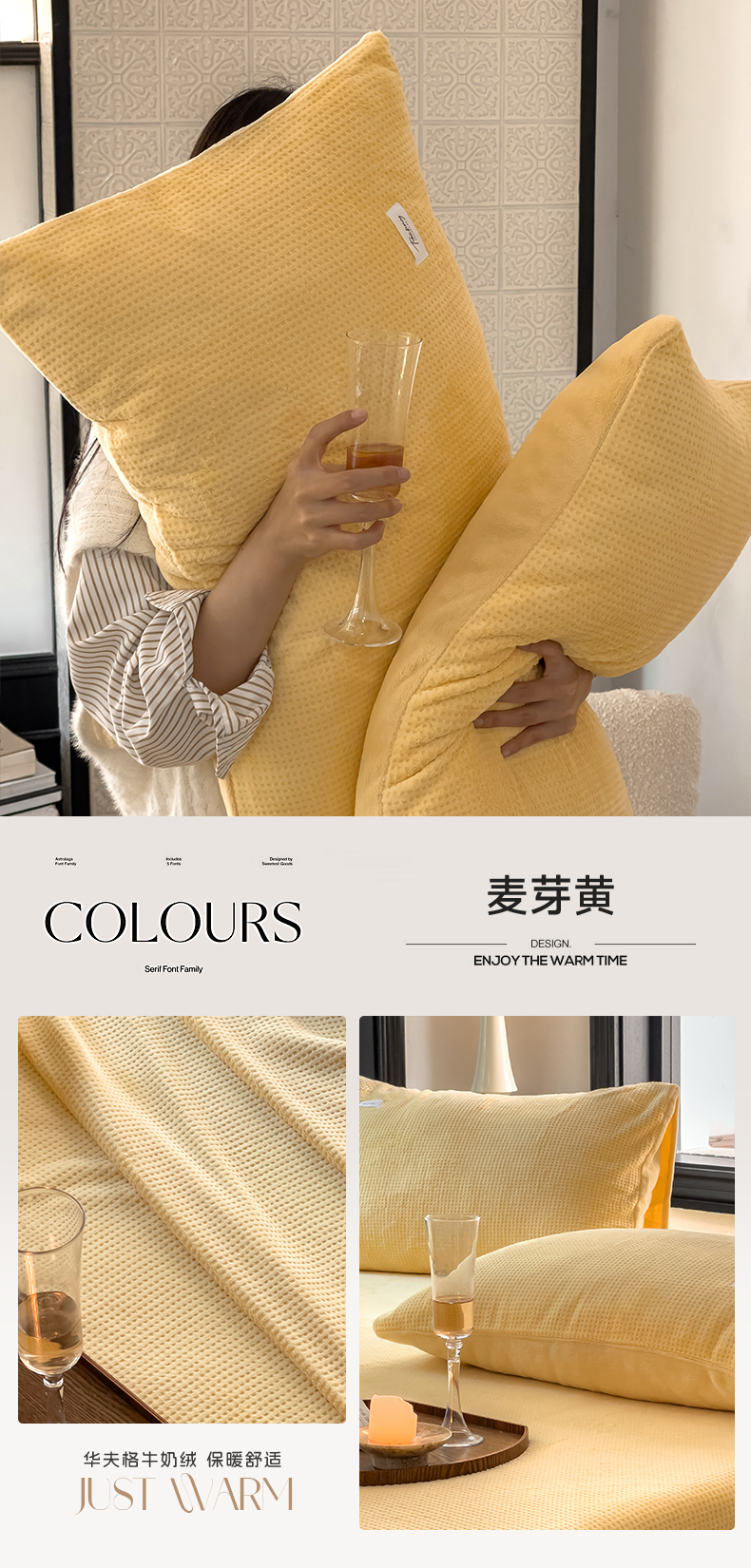 商品名称:时光里 2023新款全消光华夫格绒枕套 麦芽黄
