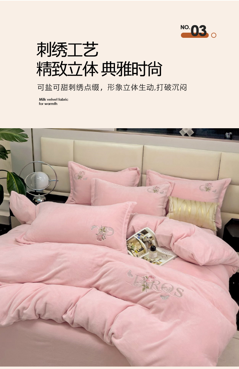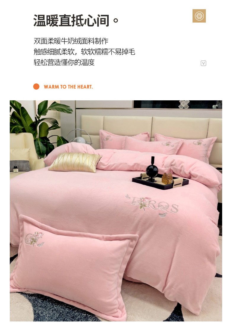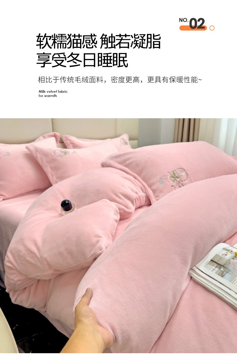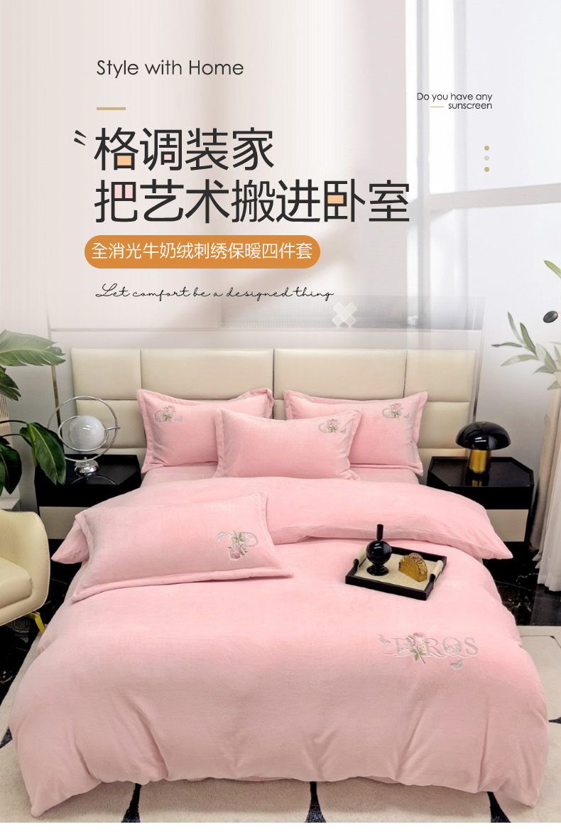 商品名称:星尚 2023新款全消光牛奶绒刺绣保暖四件套-迪美 樱花粉