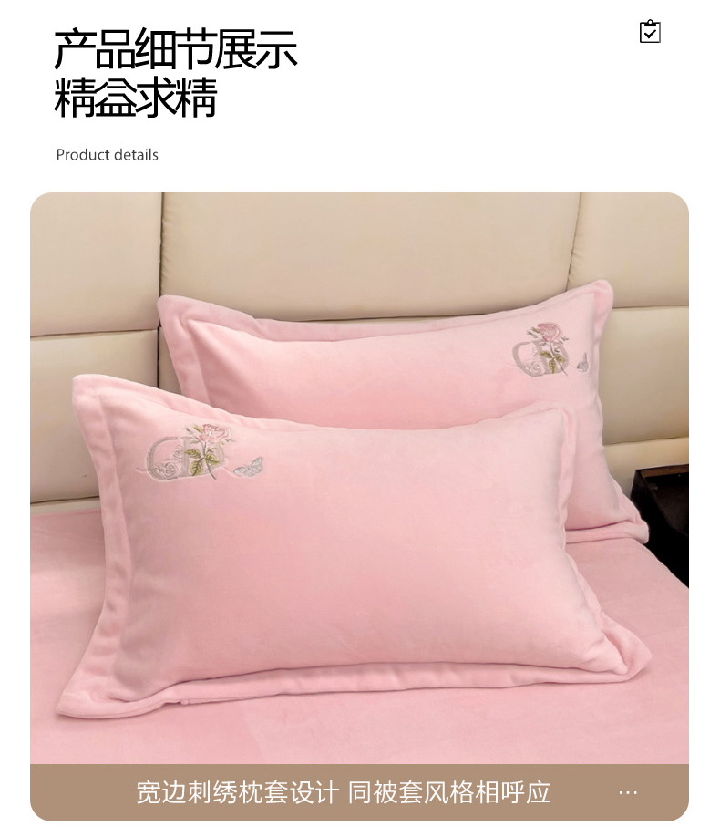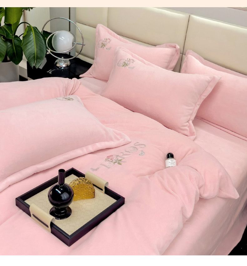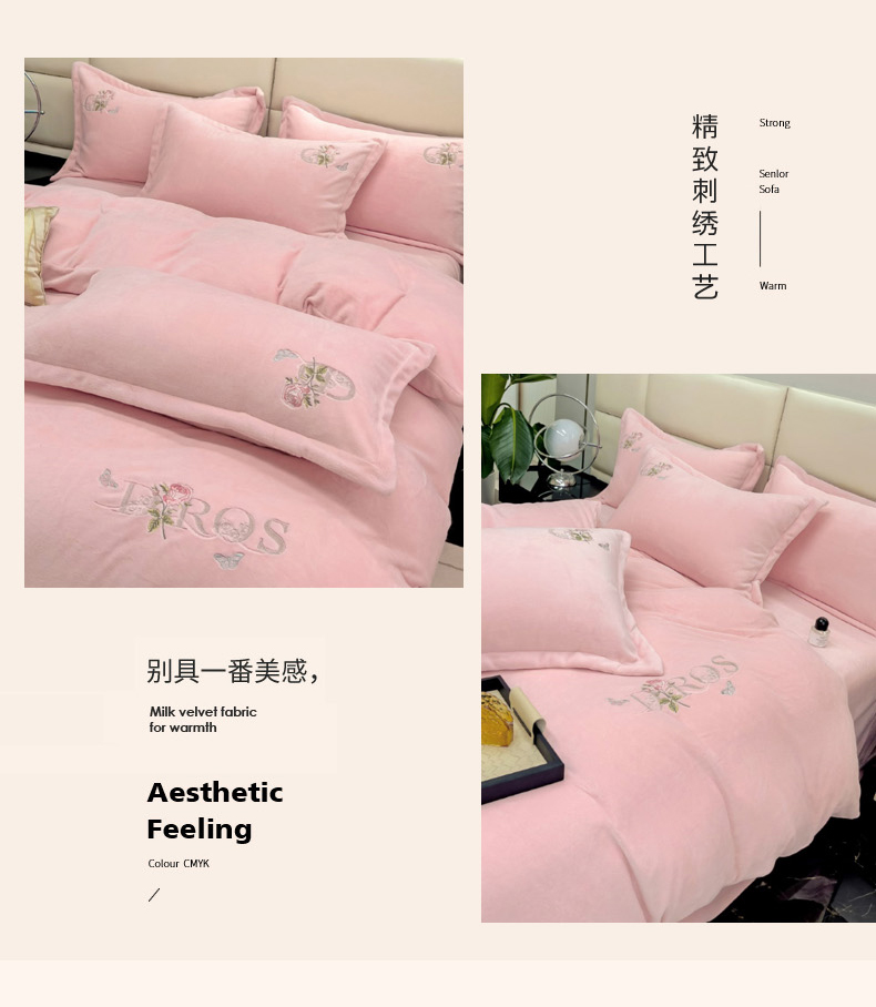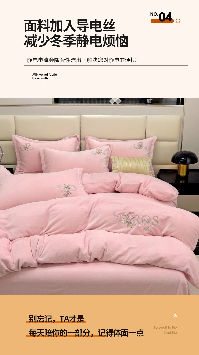商品名称:星尚 2023新款全消光牛奶绒刺绣保暖四件套-迪美 樱花粉