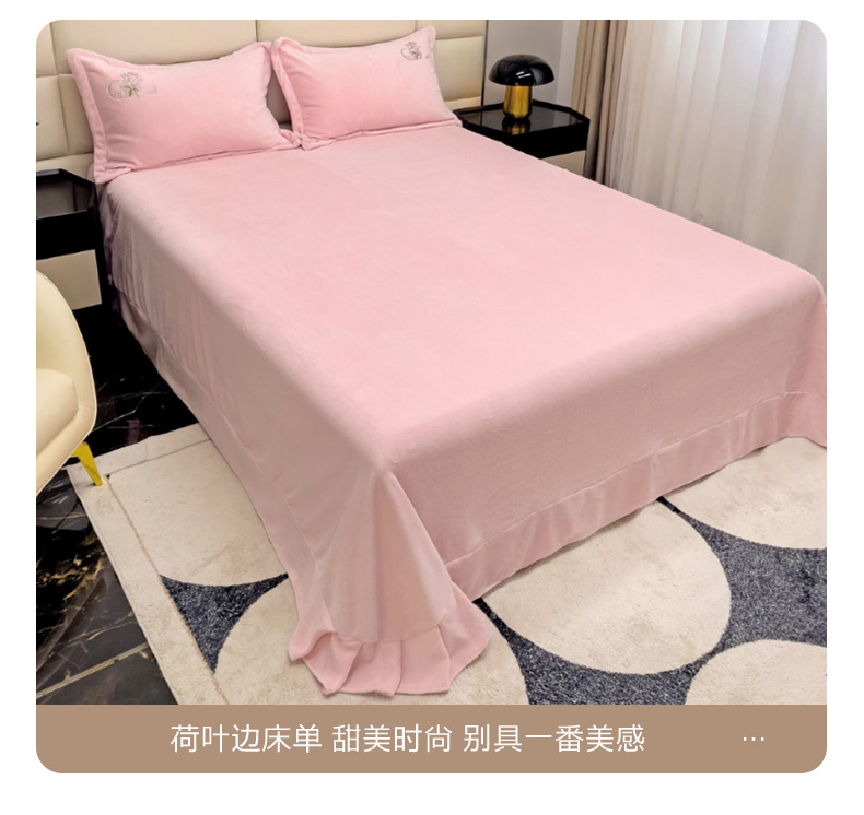 (总)星尚家纺 2024新款加厚保暖全消光牛奶绒夹棉床裙四件套-玫瑰之恋,粉玉,寐紫,浅蓝,水绿