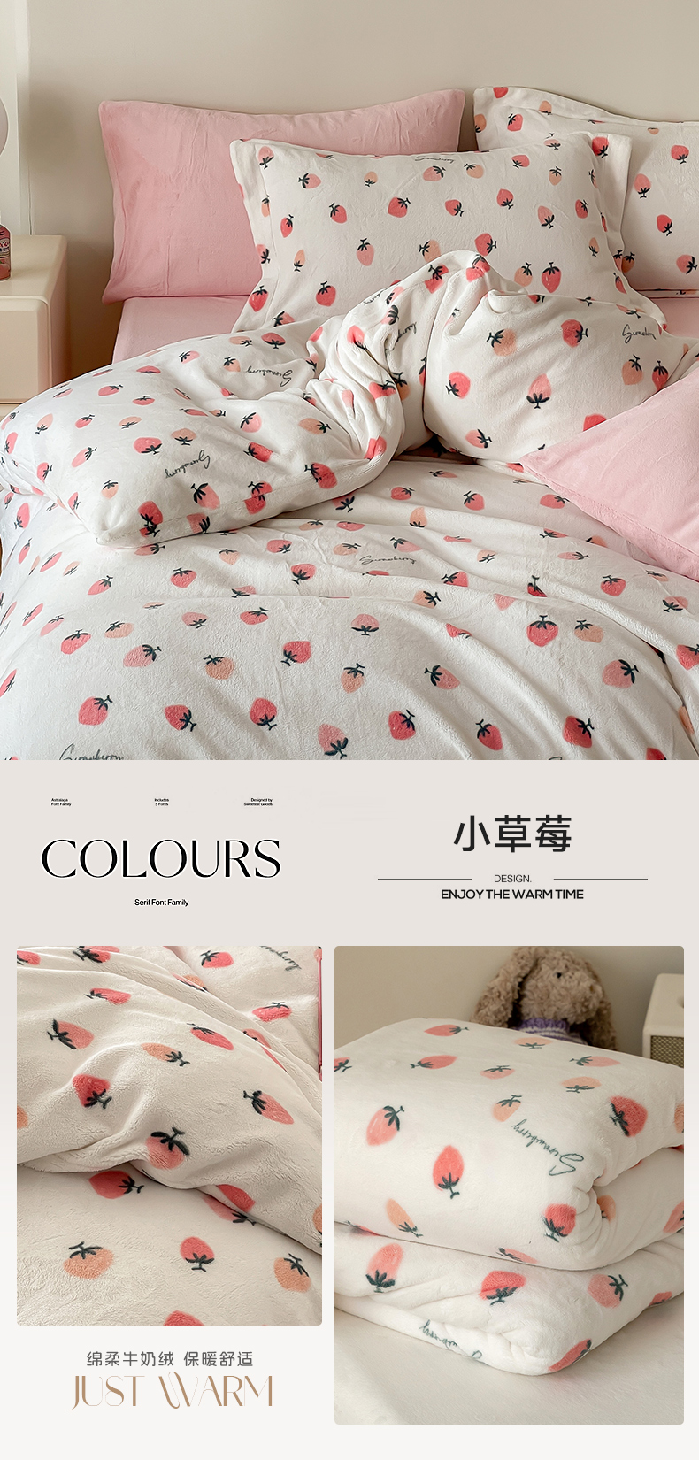 商品名称:时光里 2023新款全消光加厚牛奶绒印花单被套 小草莓