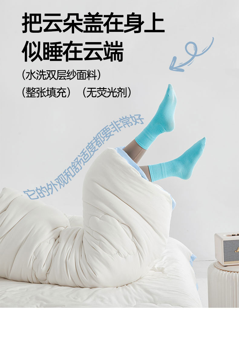 当前位置: 91家纺网 > 商品网购 > 被子 > 冬被 > 灰鲸 2025新款轻盈舒适水洗双层纱星云朵朵被被子被芯 白色