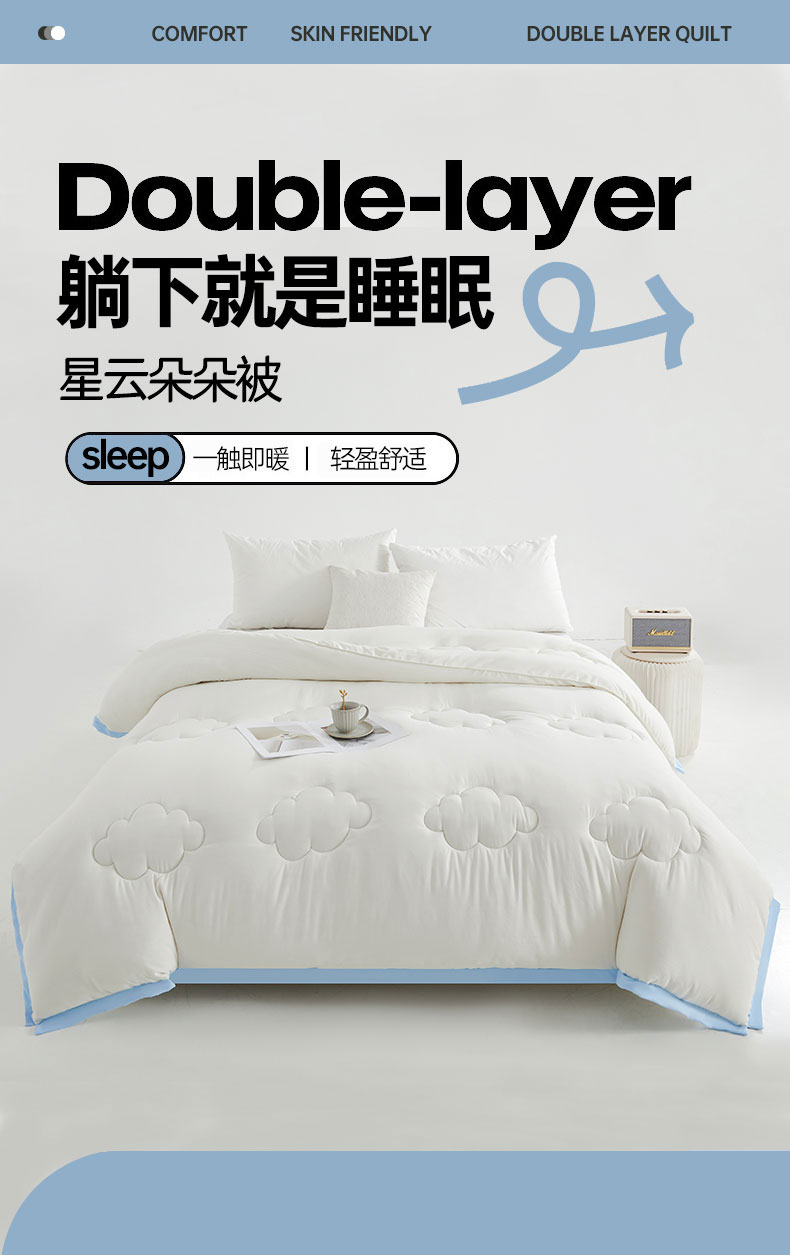 • 91家纺网 家纺一手货源 找家纺 灰鲸 2025新款轻盈舒适水洗双层纱星云朵朵被被子被芯 白色