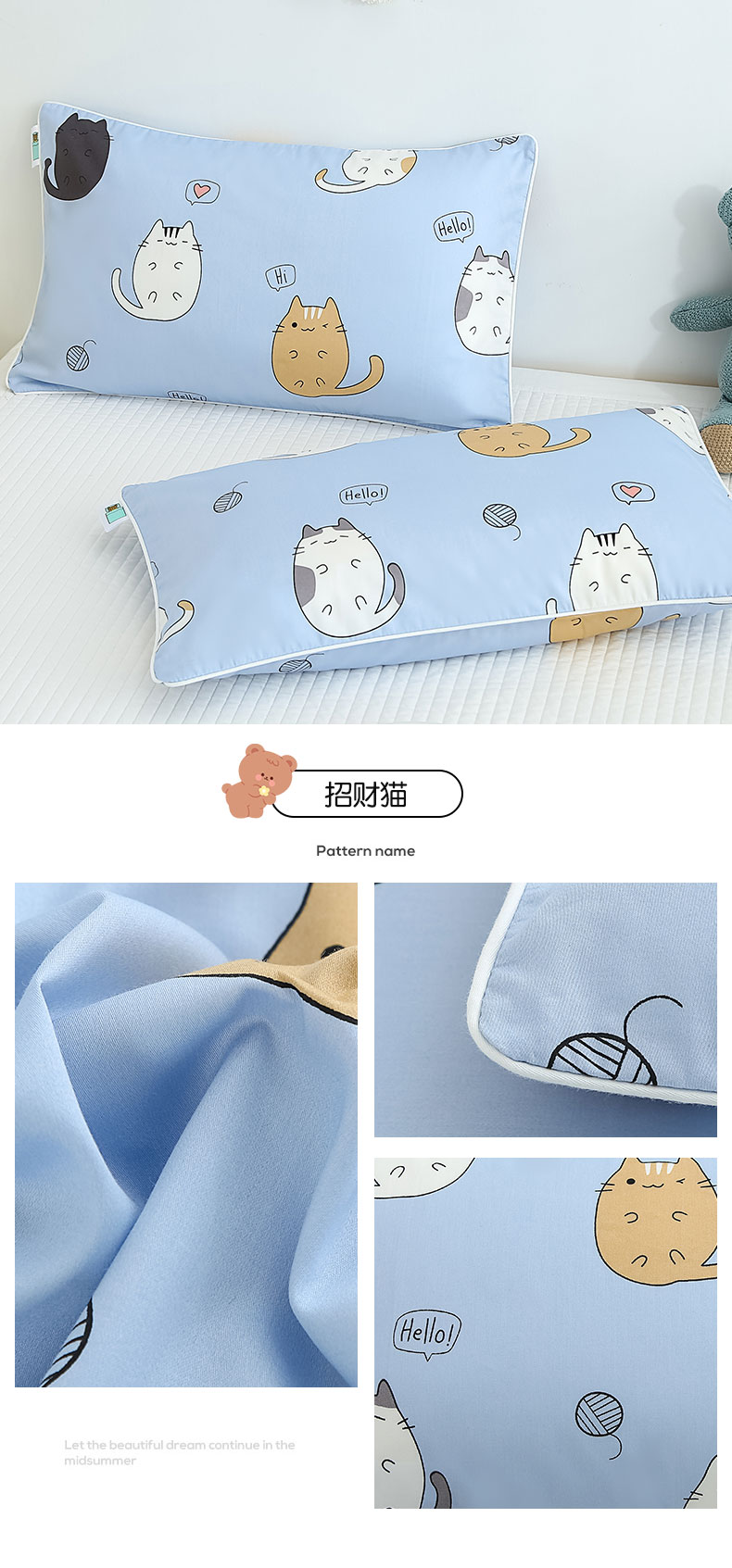 商品名称:良佐生活 2023新款60支全棉贡缎卡通信封款枕套 招财猫