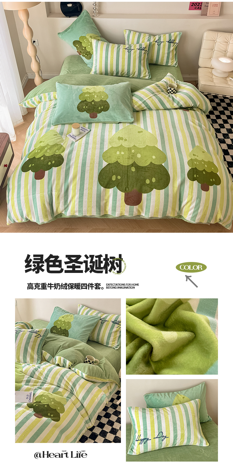 懒猫家纺 2024新款【高克重ins风】230克牛奶绒四件套 绿色心情