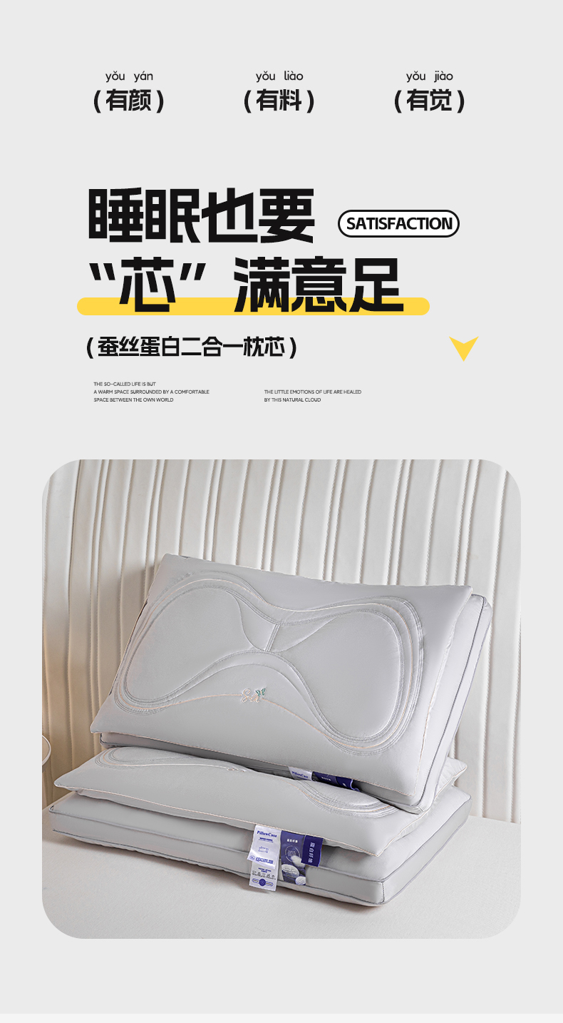 当前位置: 91家纺网 > 商品网购 > 枕头/枕芯/保健枕/颈椎枕 > 普通枕芯 > (总)歌历斯家纺 2023新款二合一蛋白深睡眠枕头枕芯