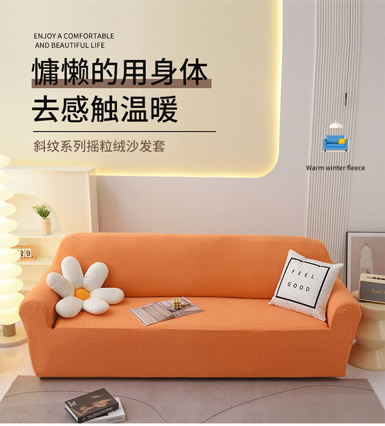商品名称:天下布艺 2023新款摇粒绒沙发套斜格 斜格橙色