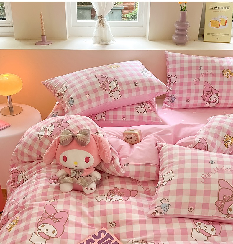 (总)曼之夏 2026新款全棉三丽鸥正版授权卡通四件套,波点美乐蒂,电话凯蒂,都市凯蒂,红格凯蒂,蝴蝶结大耳狗,凯蒂果果,蘑菇凯蒂,牛奶凯蒂,甜甜凯蒂,晚安大耳狗,樱桃凯蒂,游乐园大耳狗,元气美乐蒂,运动凯蒂