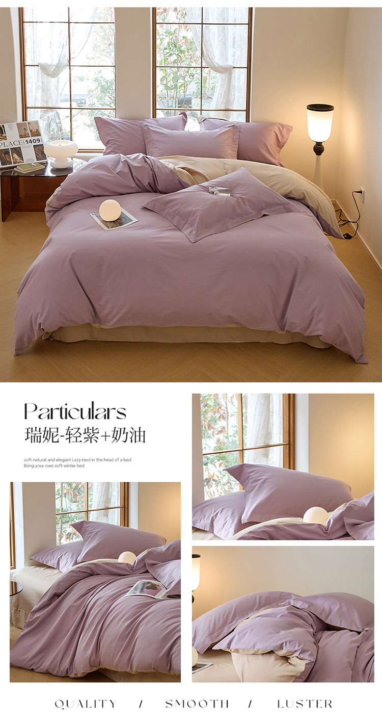 商品名称:秀色2025高端50支加厚陶瓷磨毛全棉四件套奶油风瑞妮轻紫+奶油