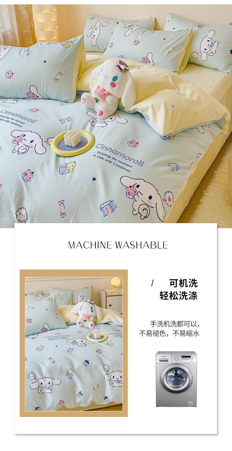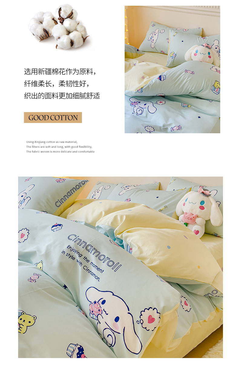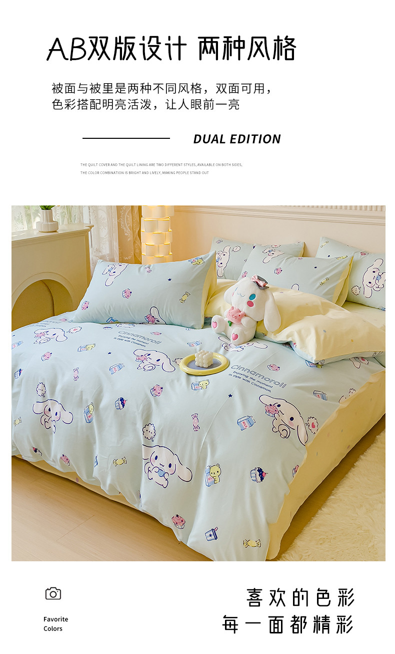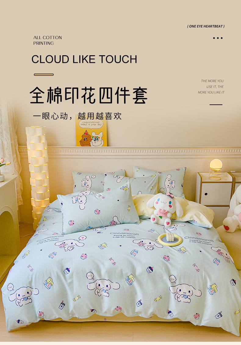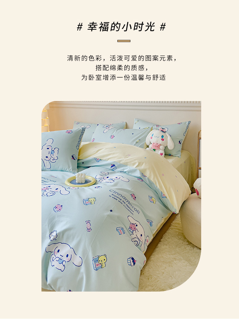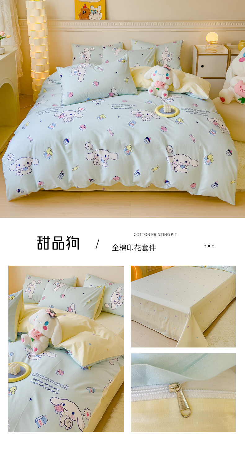 当前位置: 91家纺网 > 商品网购 > 床品套件 > 四件套 > 全棉普通四件套 > 金丝鸟家纺 2023新款全棉印花三利欧库洛米系列四件套 甜品狗
