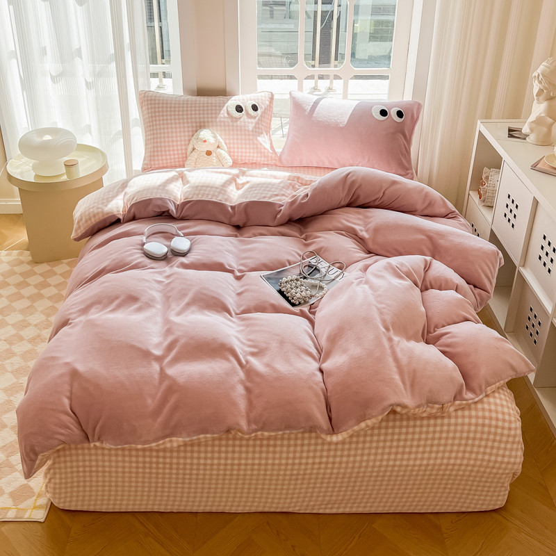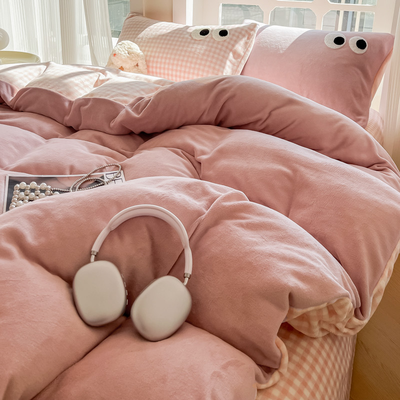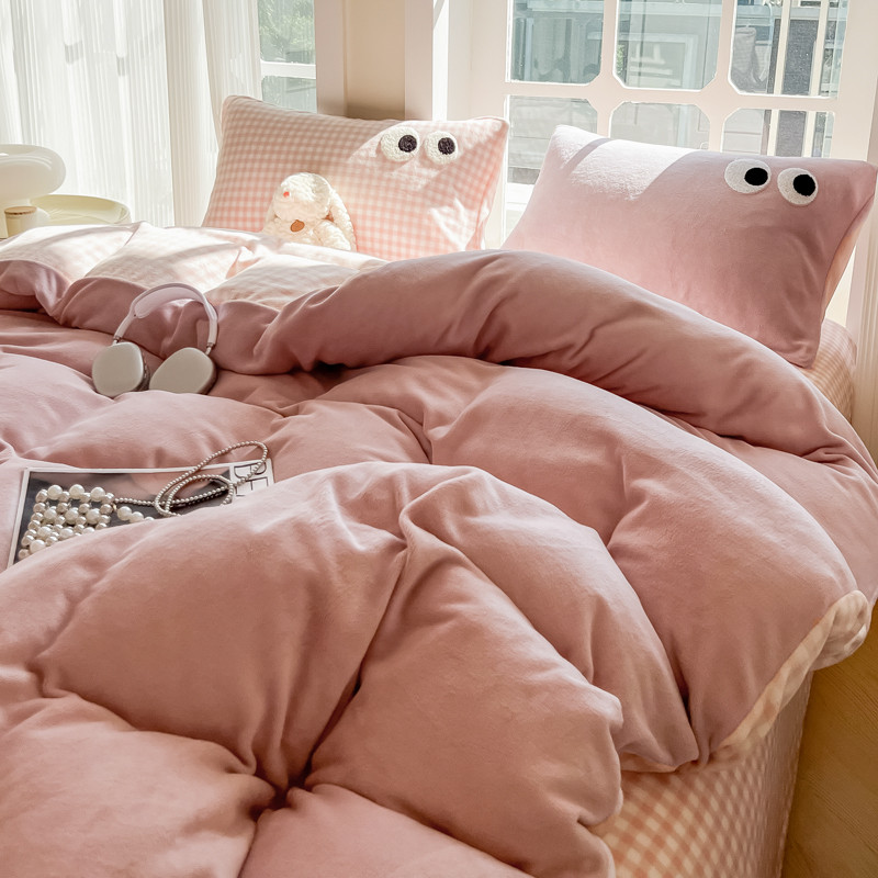 当前位置: 91家纺网 > 商品网购 > 床品套件 > 四件套 > 牛奶绒四件套 > 慕尚家纺 2025新款牛奶绒大眼睛系列四件套 芭比粉豆沙