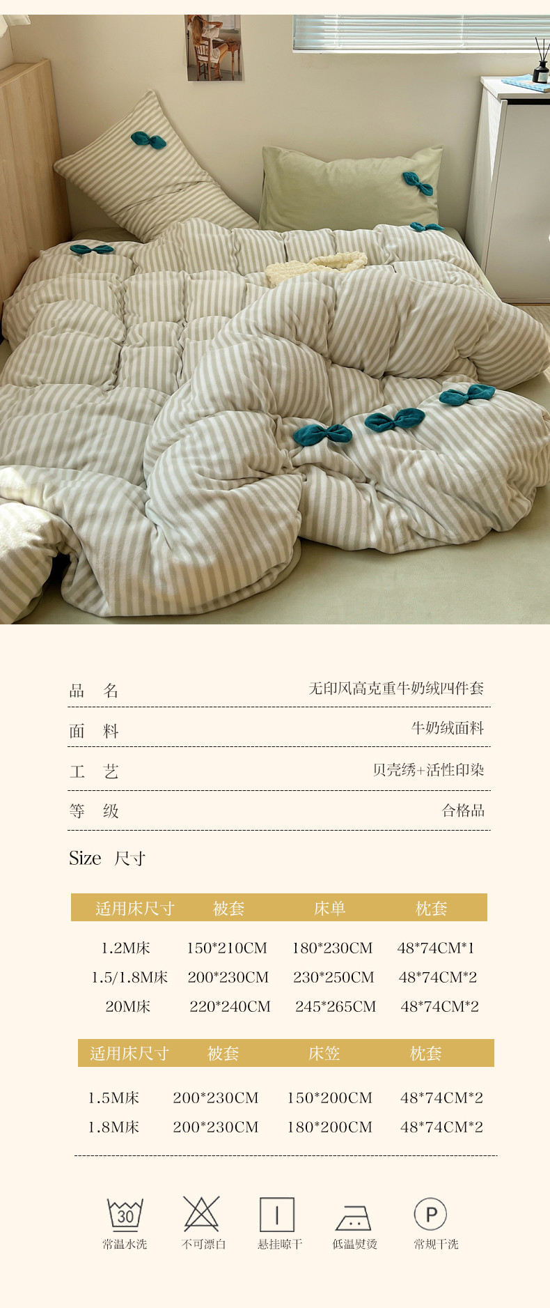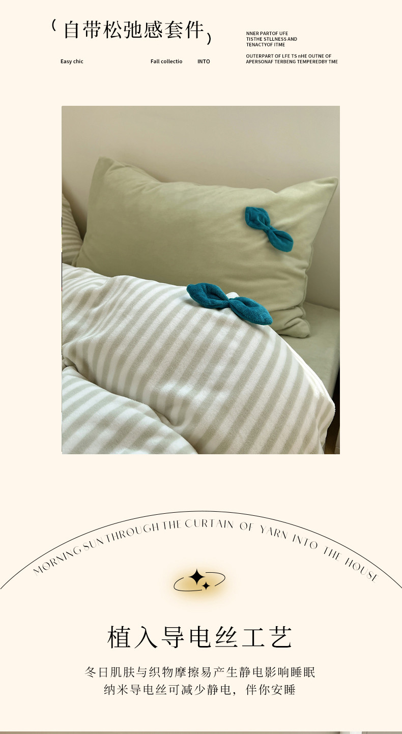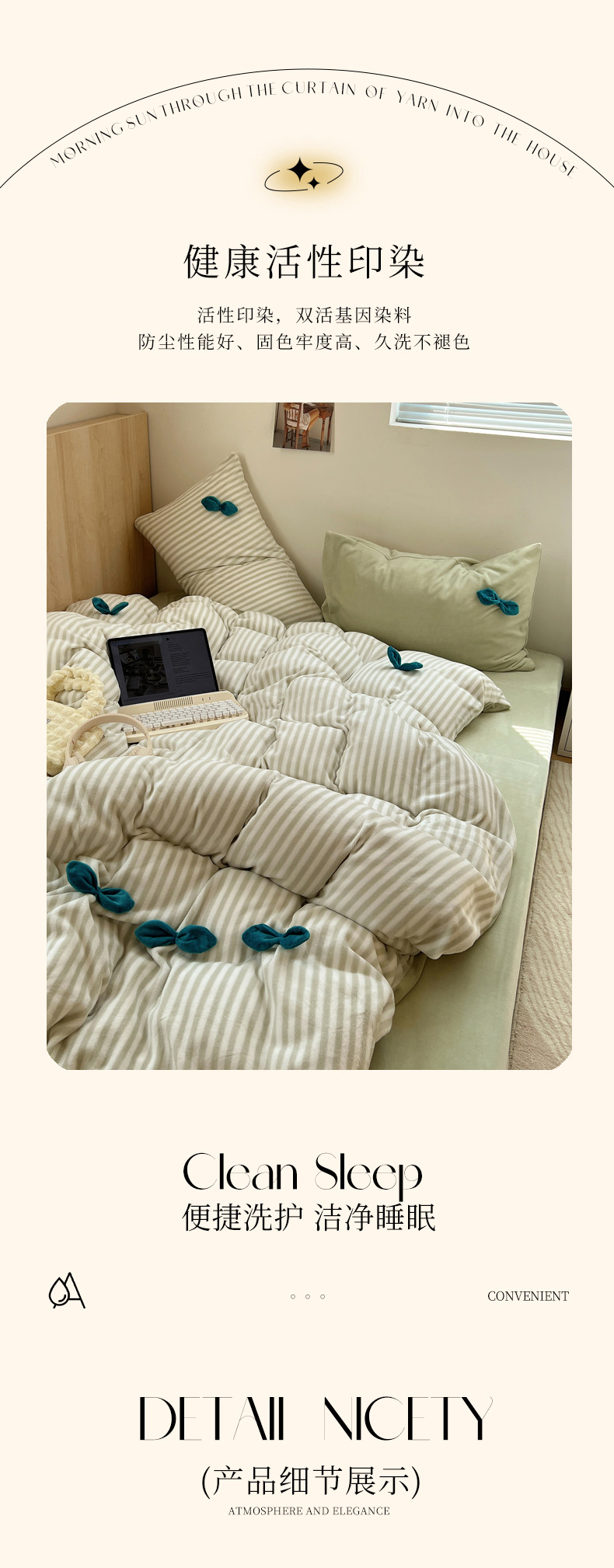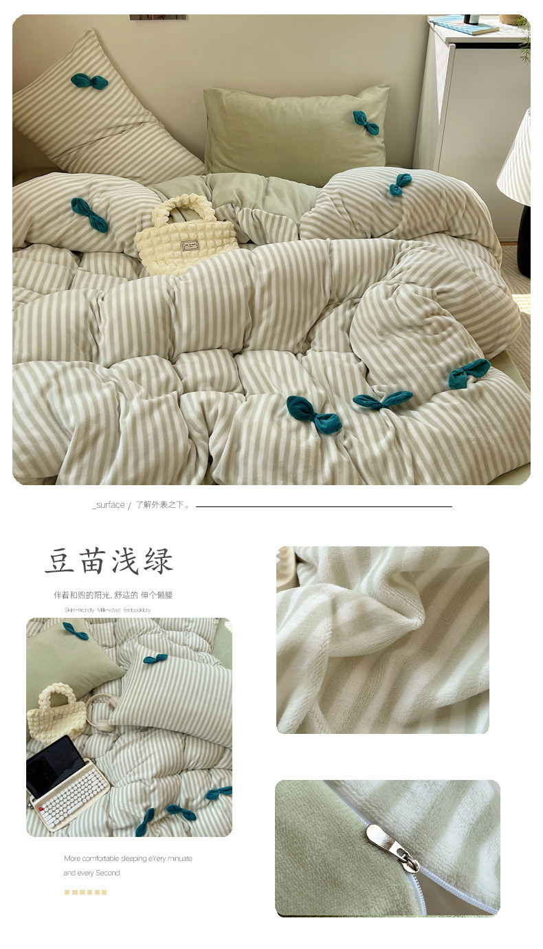商品名称:三朵家纺 2023新款立体豆苗无印风高克重牛奶绒四件套 豆苗浅绿