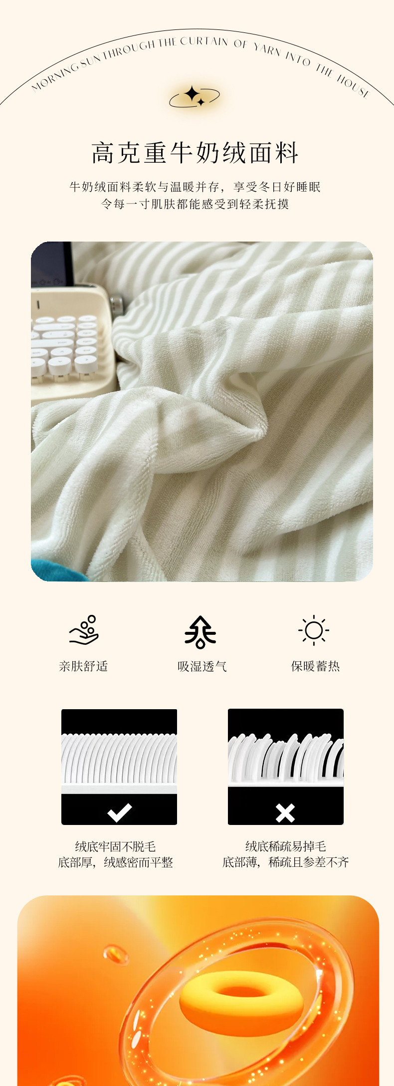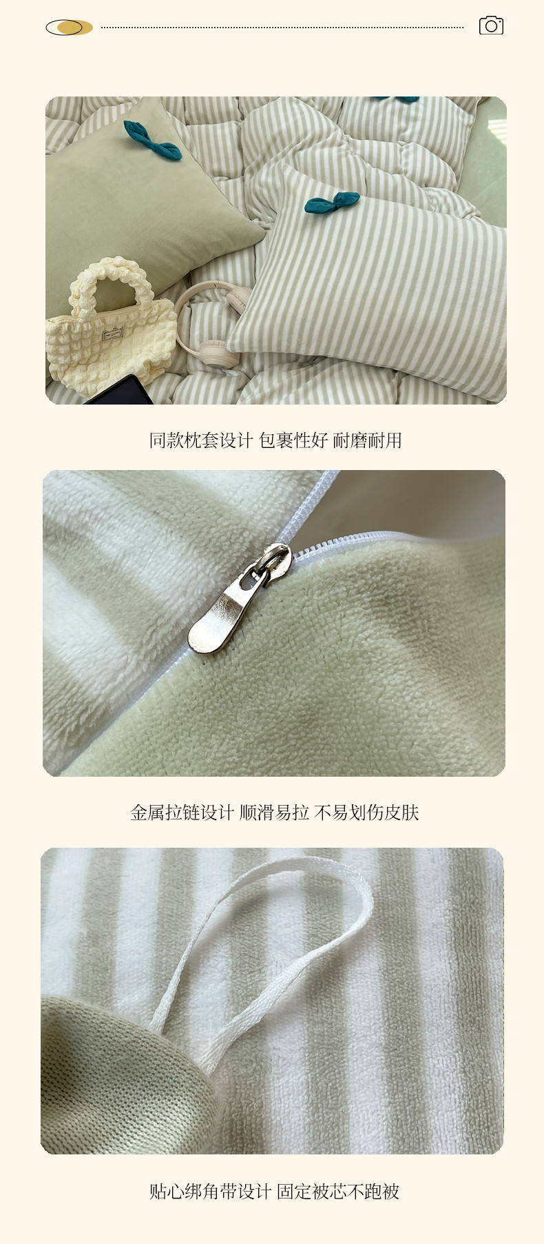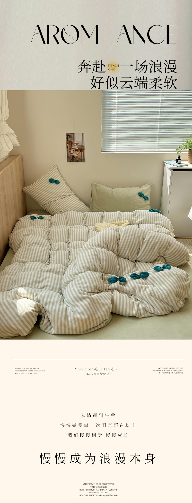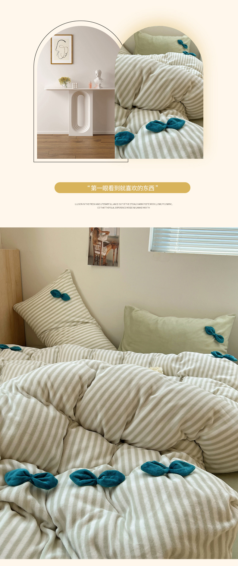 商品名称:三朵家纺 2023新款立体豆苗无印风高克重牛奶绒四件套 豆苗浅绿