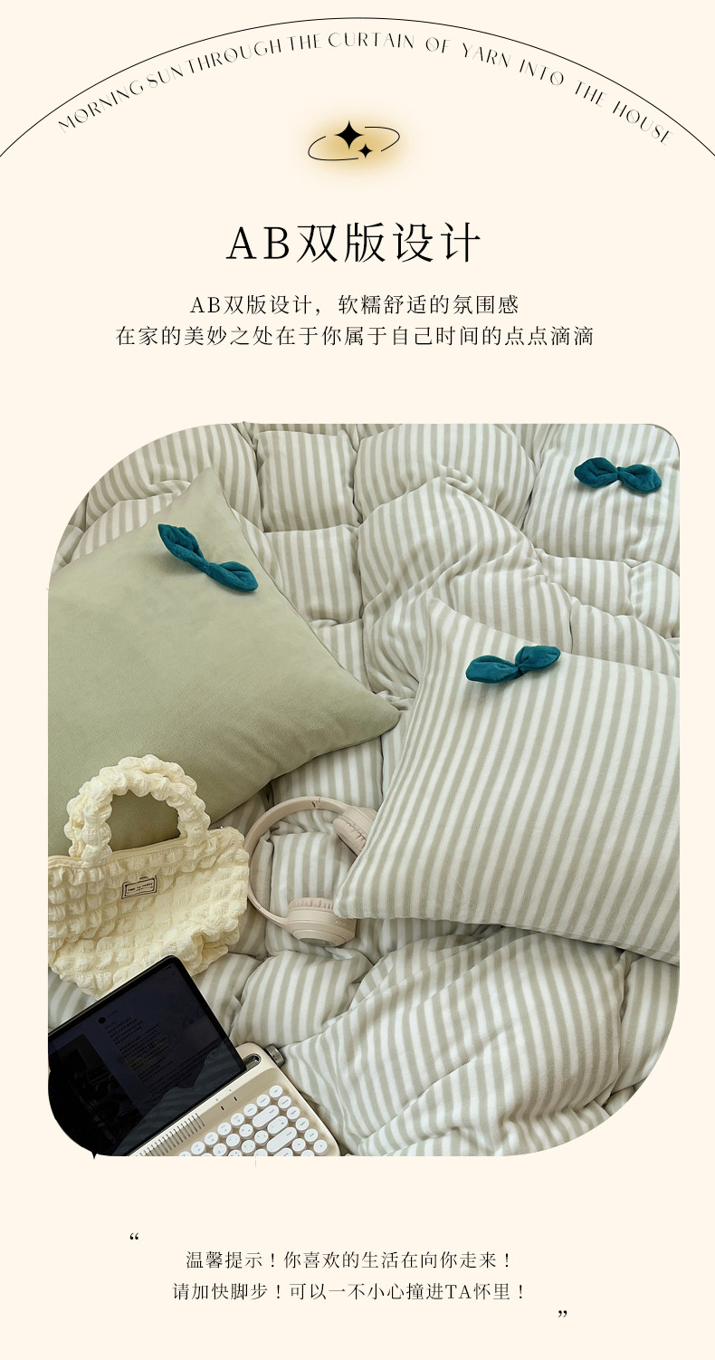 三朵家纺 2023新款立体豆苗无印风高克重牛奶绒四件套 豆苗浅绿
