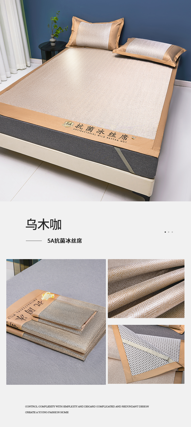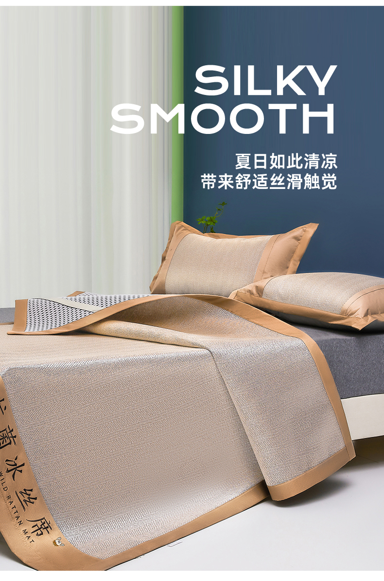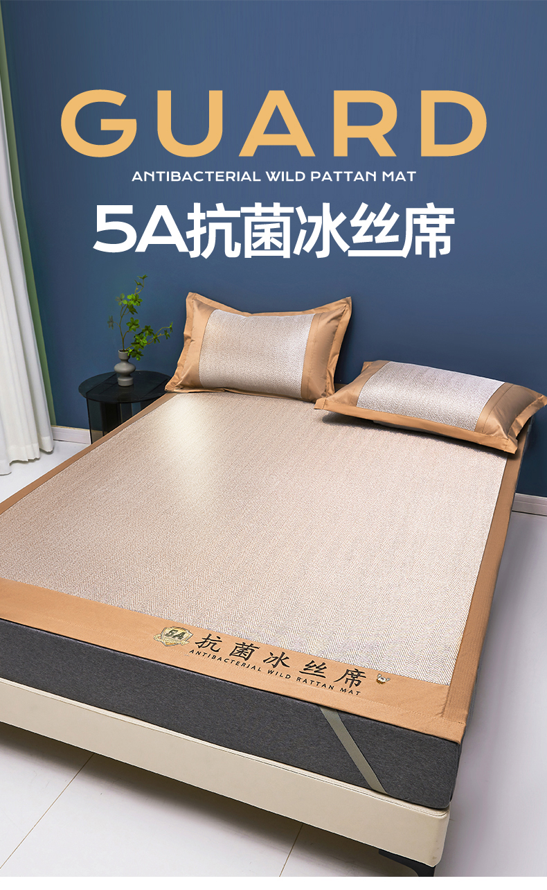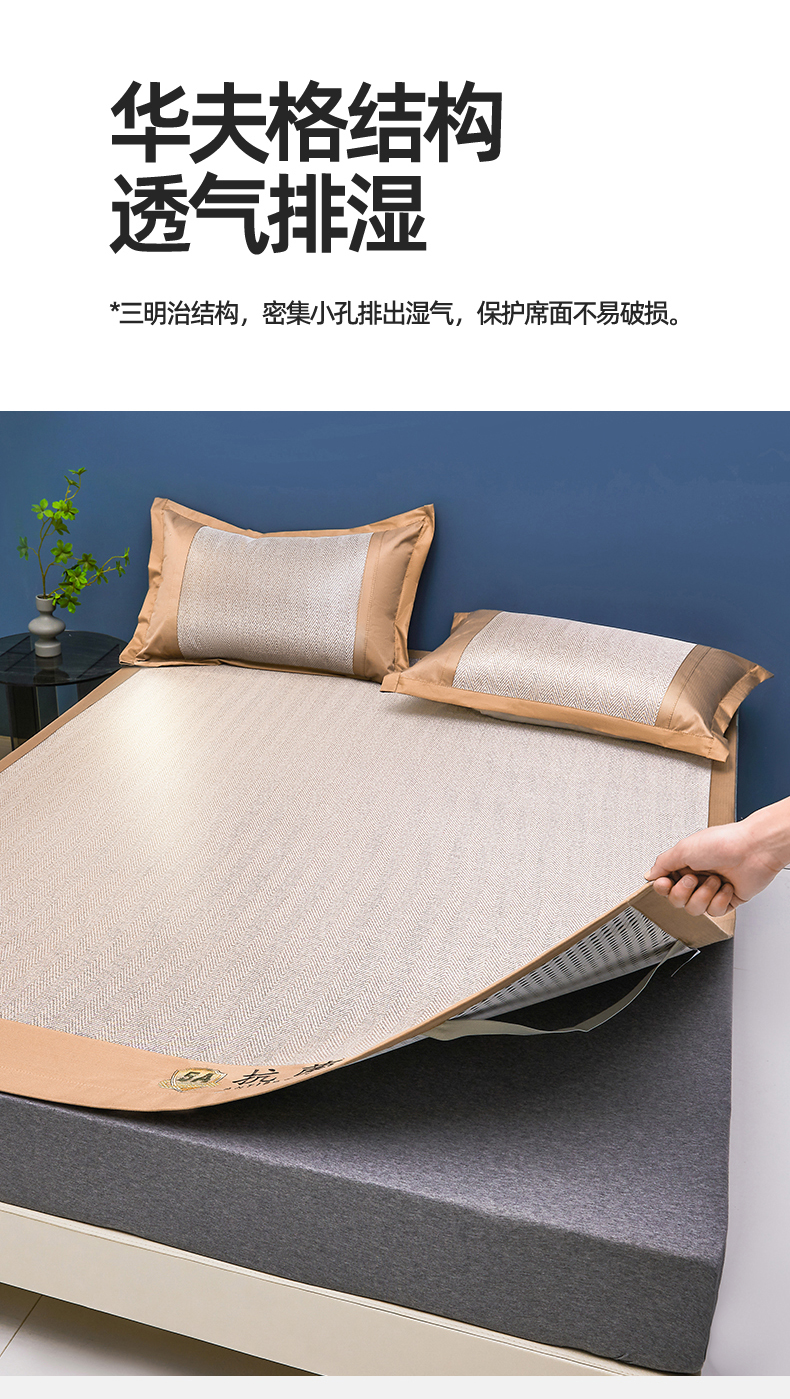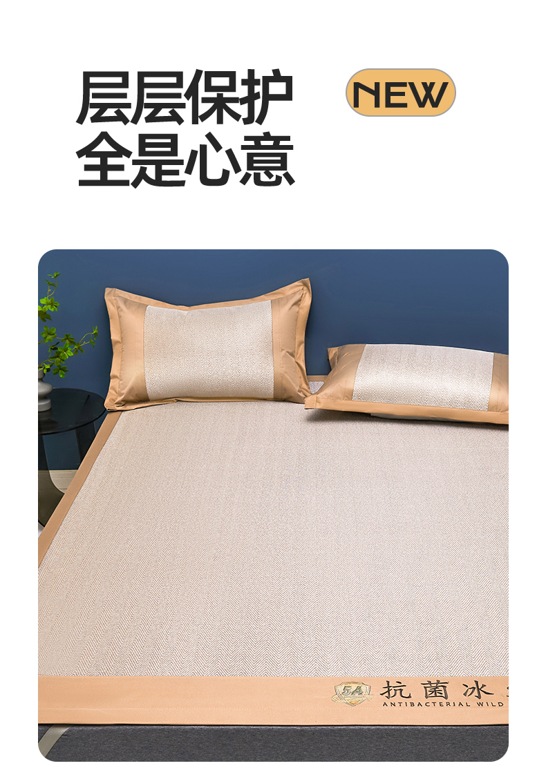 鑫姿席业 2025新款5A抗菌冰丝凉席系列 乌木咖(凉席款)