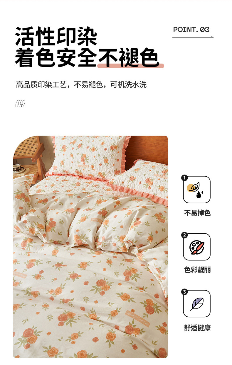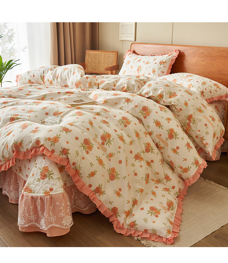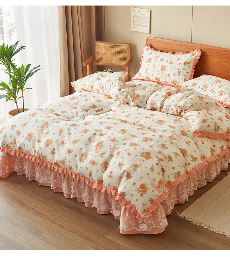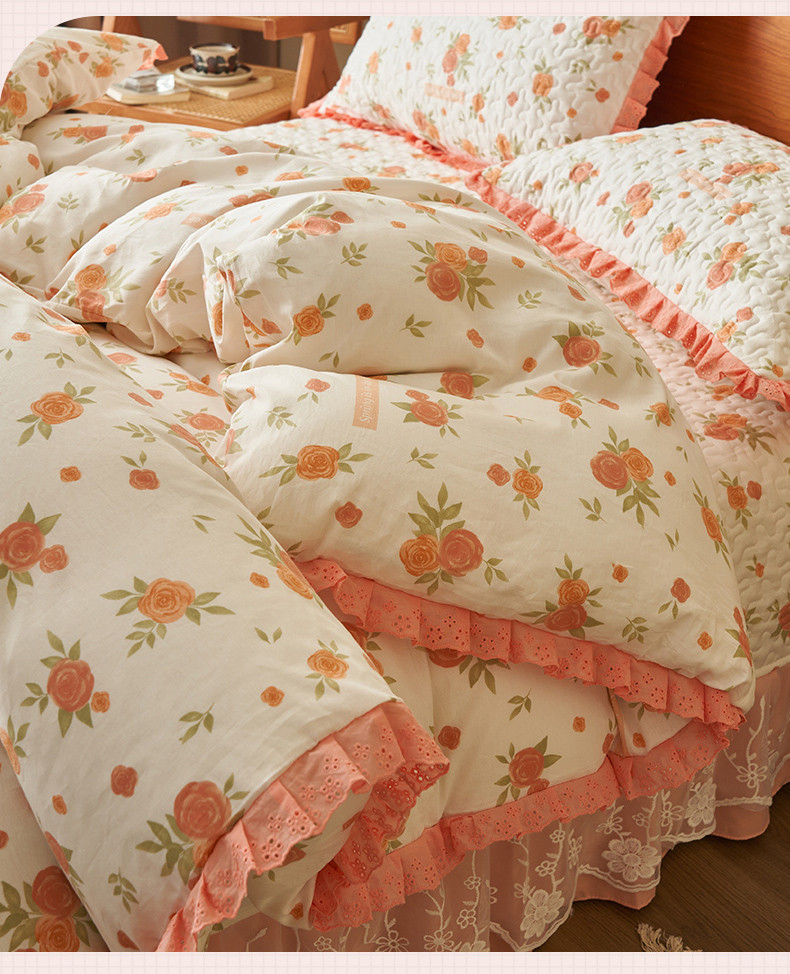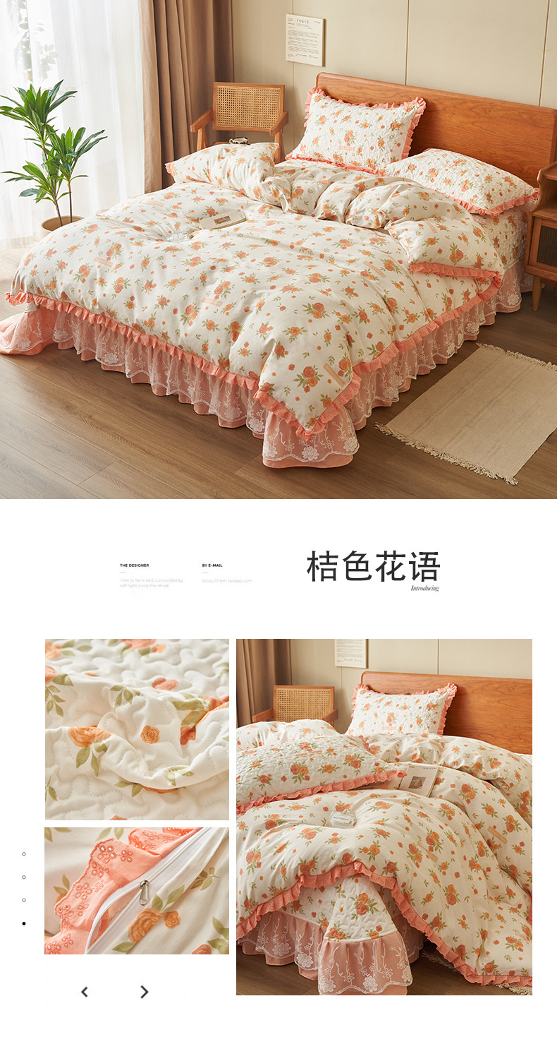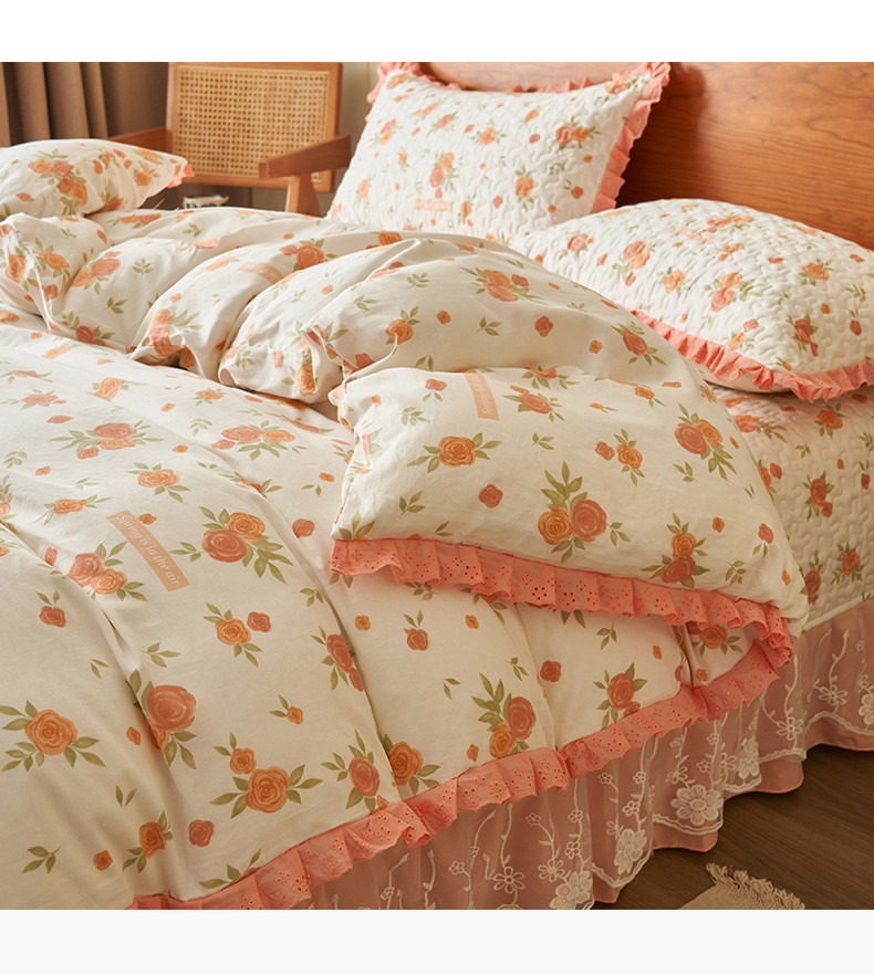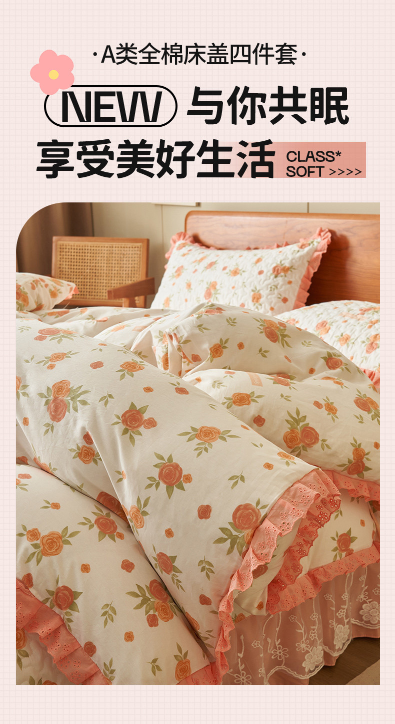 商品名称:恒爱 2023新款全棉床盖四件套 桔色花语