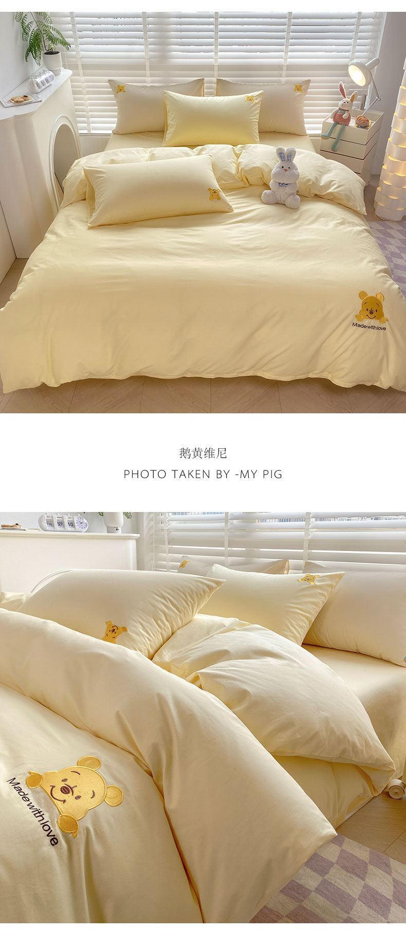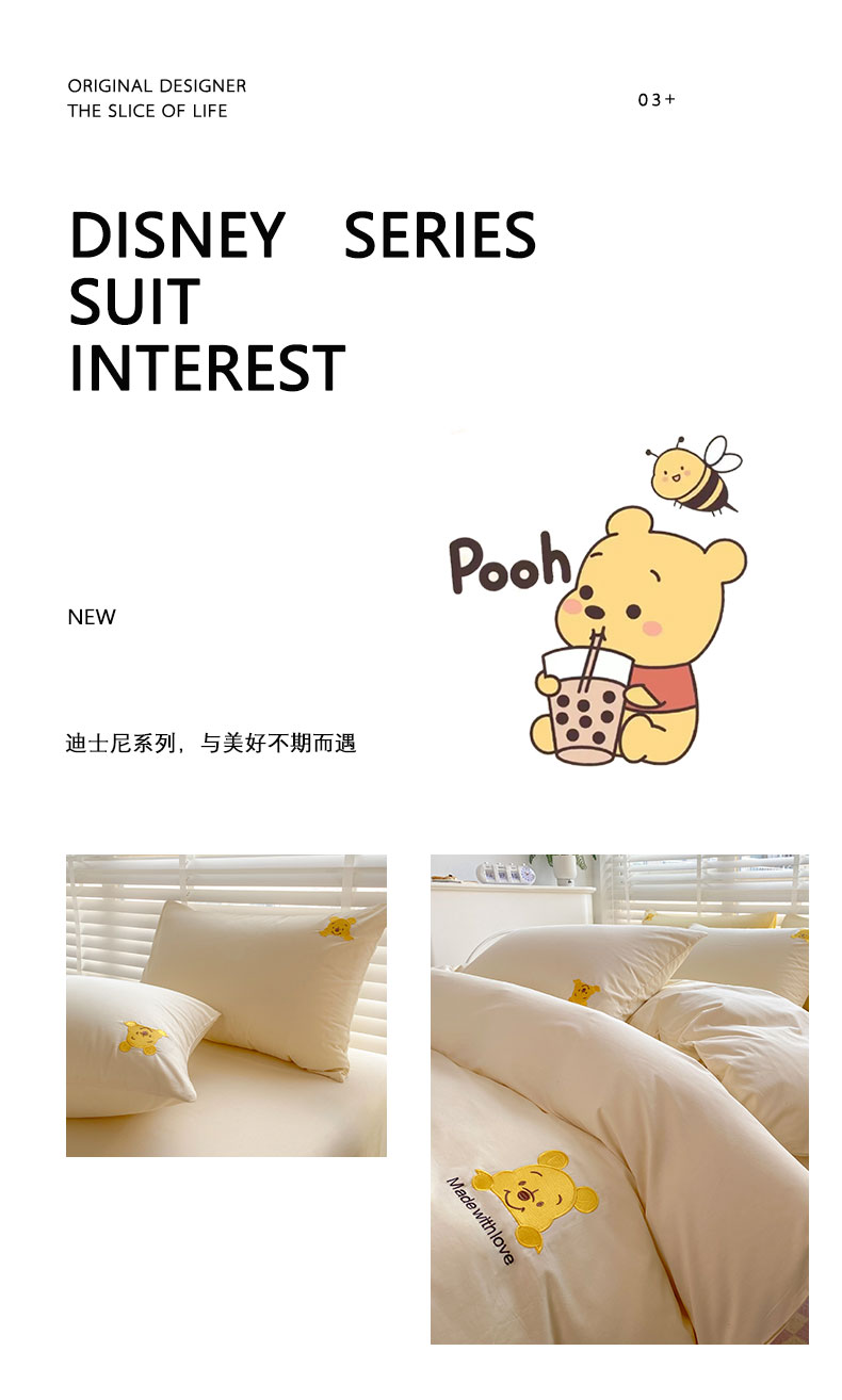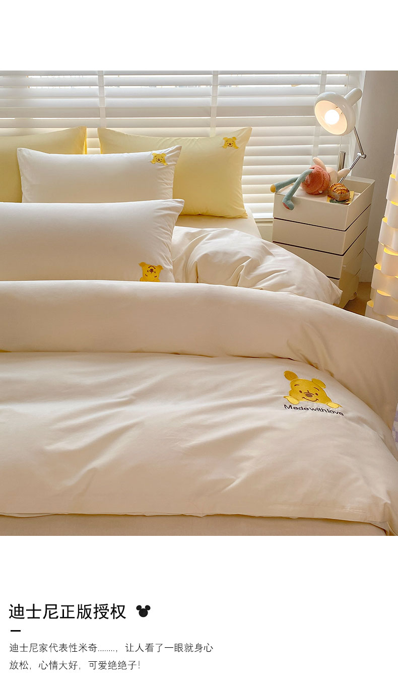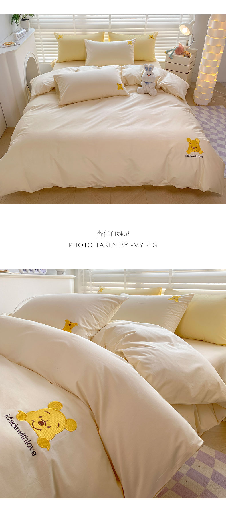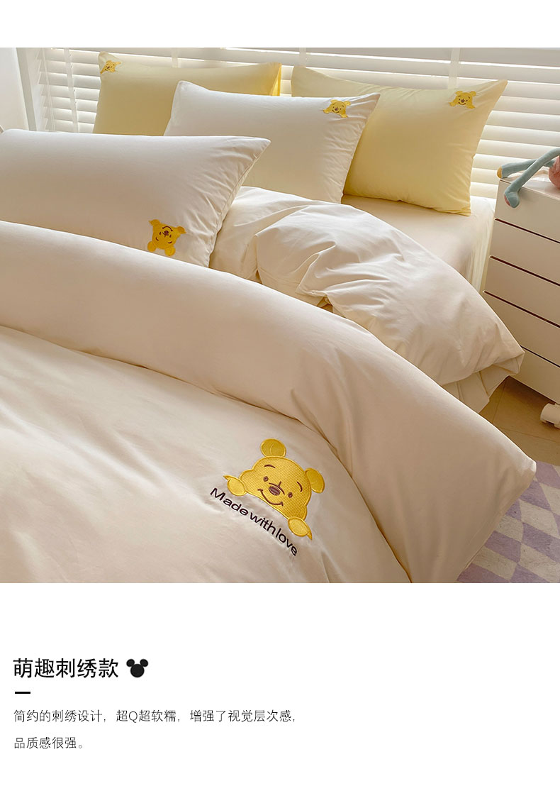 (总)Mr.pig猪先生水洗棉 2023新款迪士尼绣花单被套 杏仁白维尼