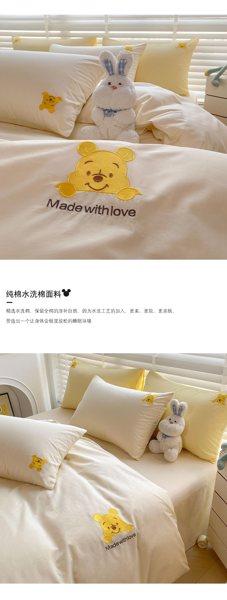 商品名称:(总)Mr.pig猪先生水洗棉 2023新款迪士尼绣花单被套 杏仁白维尼