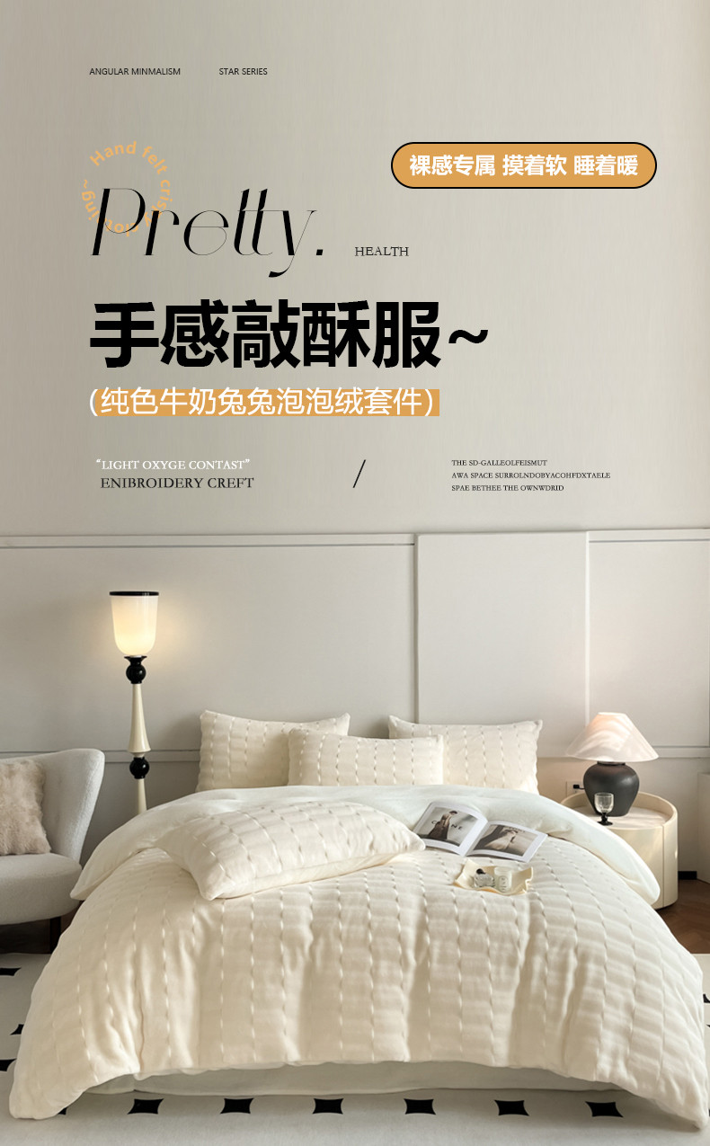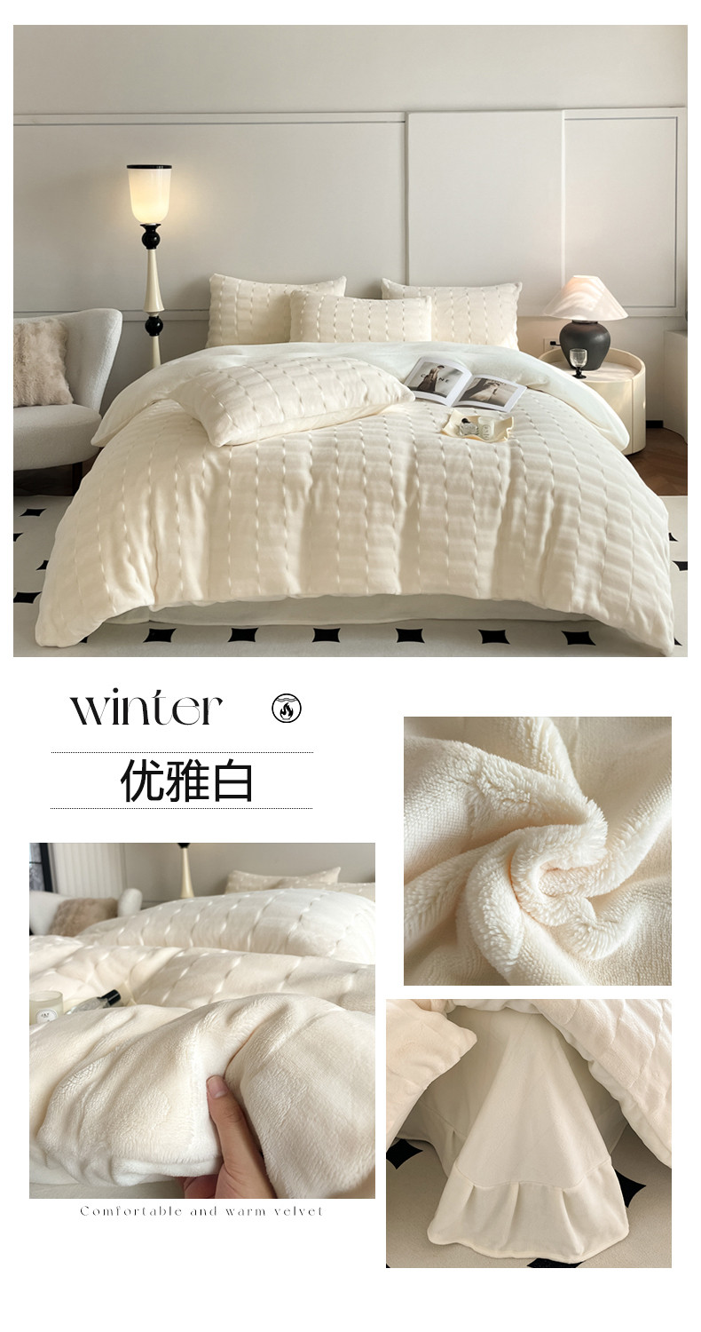 商品名称:子曰 2024新款牛奶兔兔泡泡绒四件套 优雅白