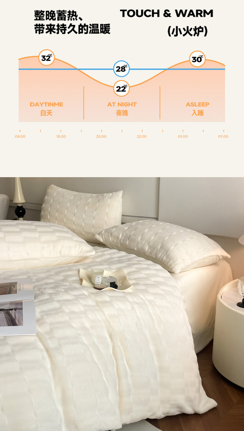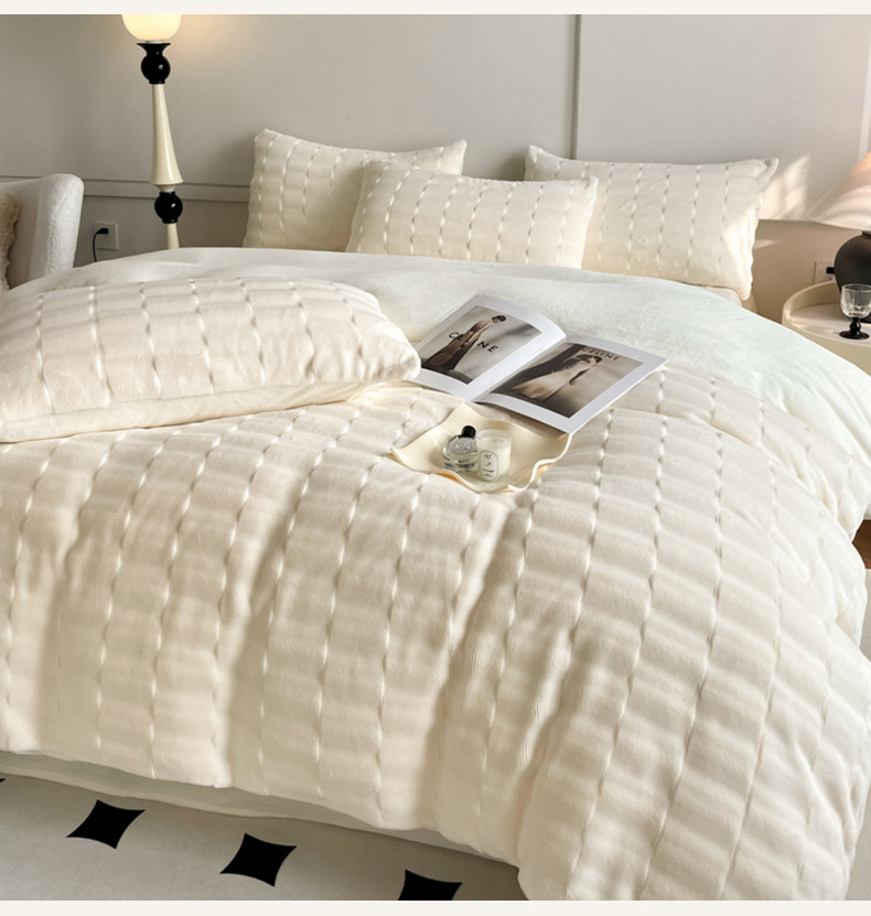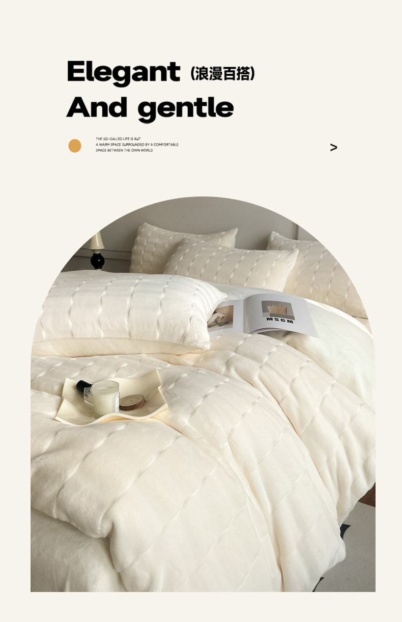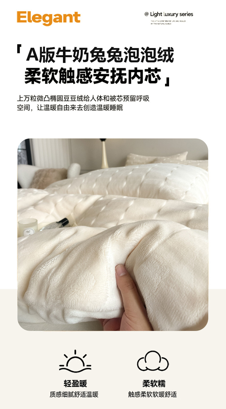 子曰 2024新款牛奶兔兔泡泡绒四件套 优雅白