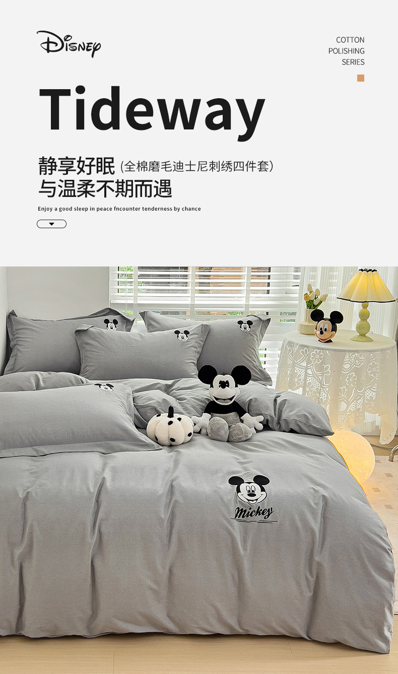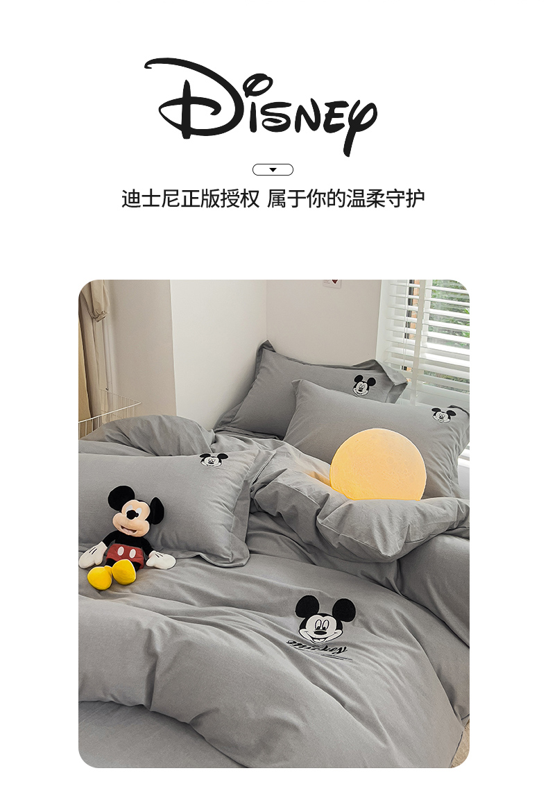 当前位置: 91家纺网 > 商品网购 > 床品套件 > 四件套 > 全棉普通四件套 > 慕尚家纺 2025新款迪士尼全棉磨毛刺绣系列四件套 米奇灰