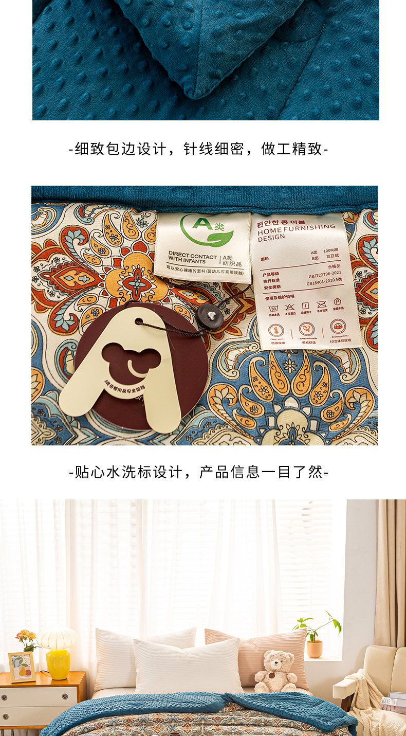 商品名称:(总)锦鹭被业 2025款A类全棉纯棉豆豆被春秋空调夏凉加厚冬被子