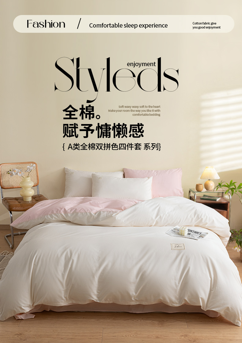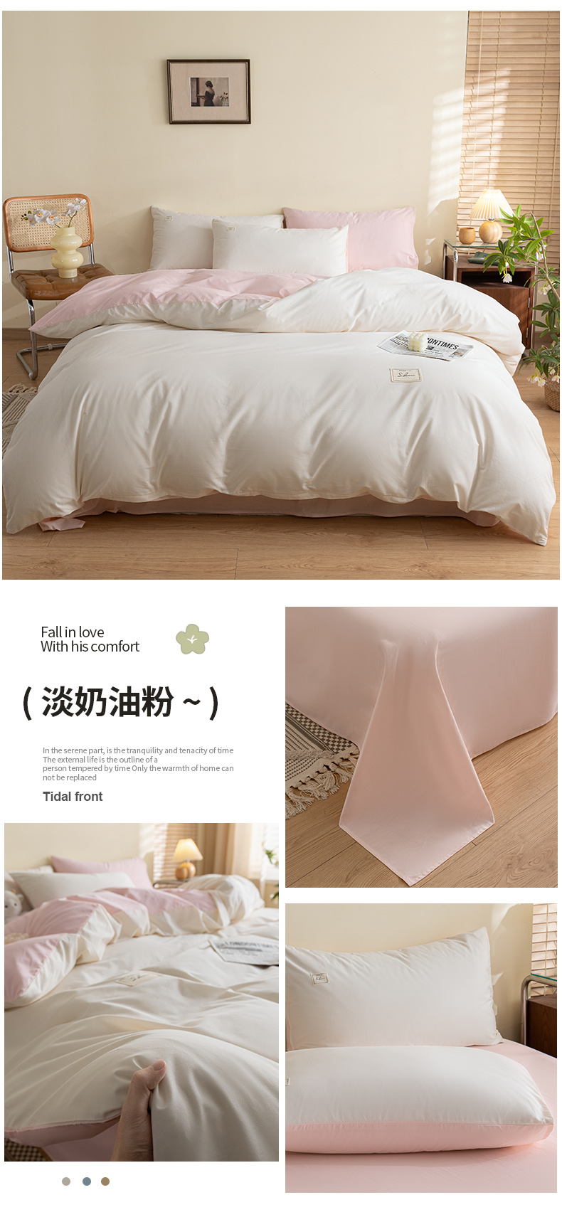 当前位置: 91家纺网 > 商品网购 > 床品套件 > 四件套 > 全棉普通四件套 > ab家纺 2024新款40支全棉双拼四件套 淡奶油粉