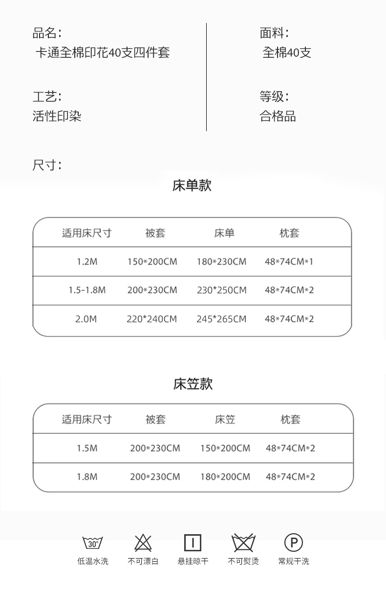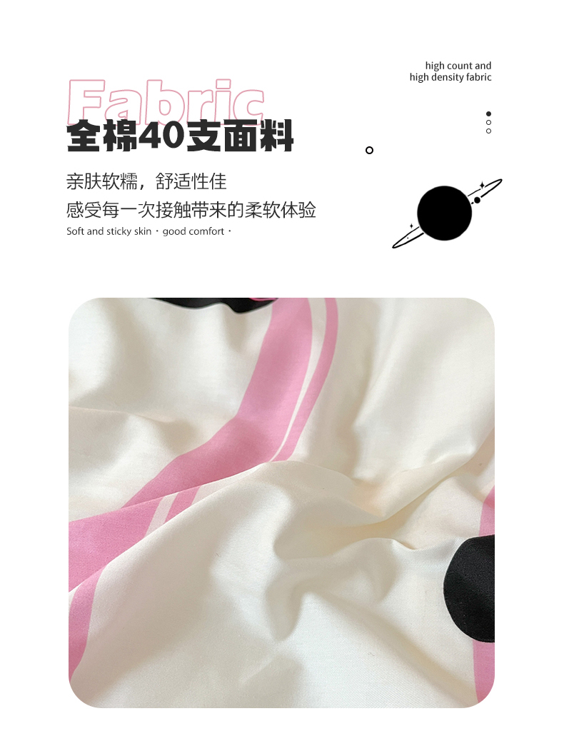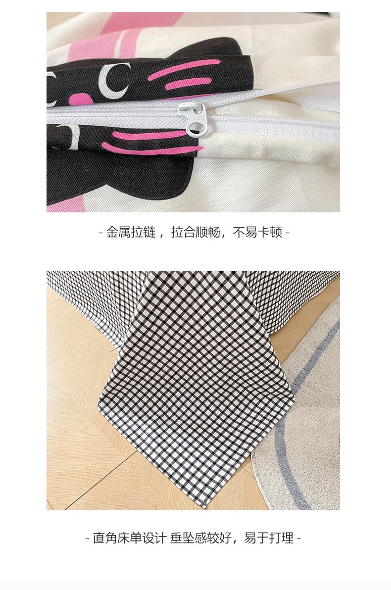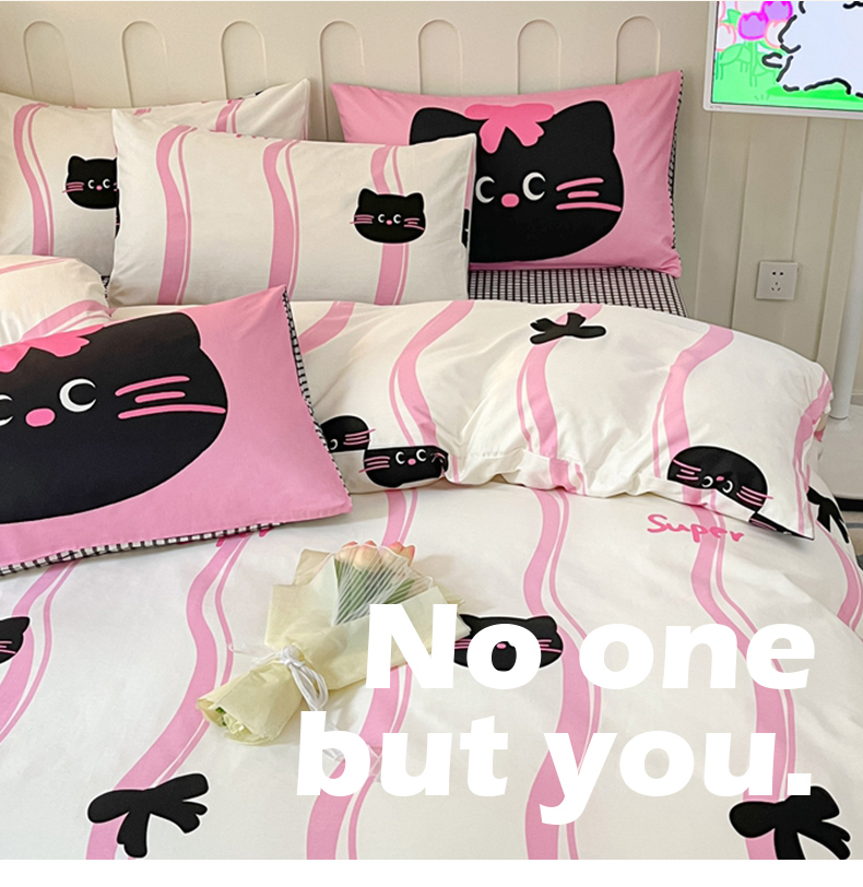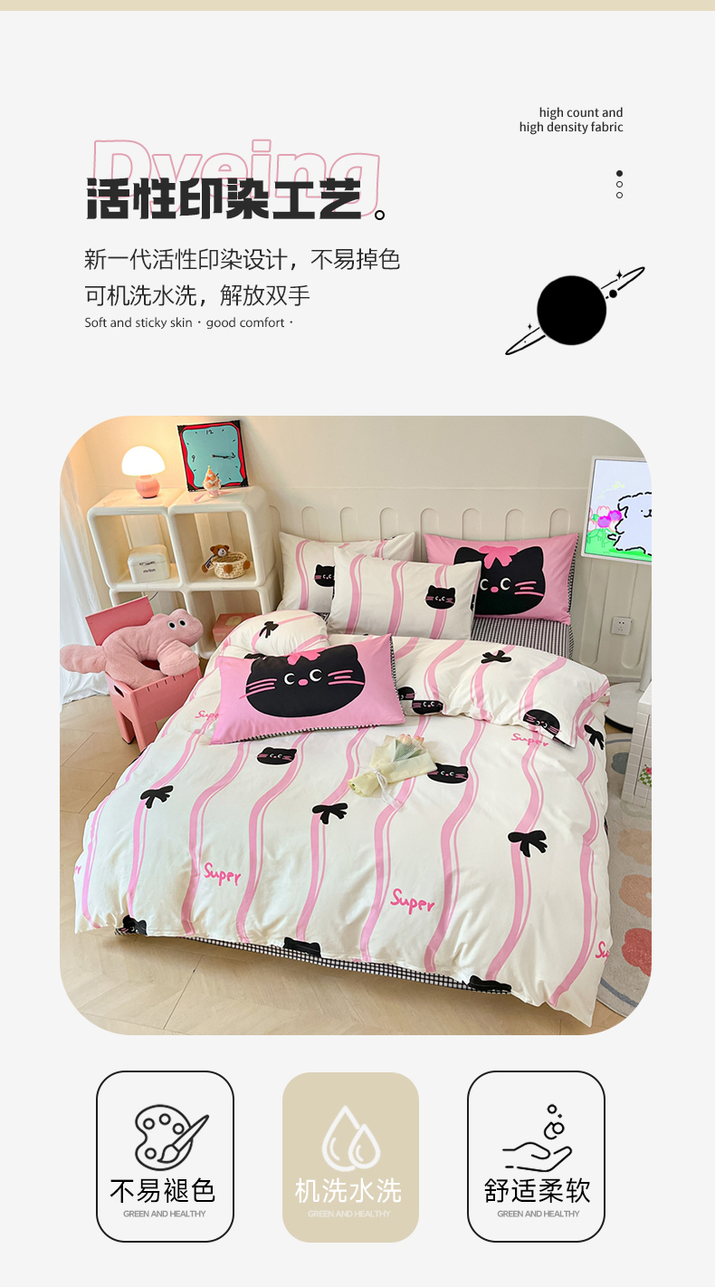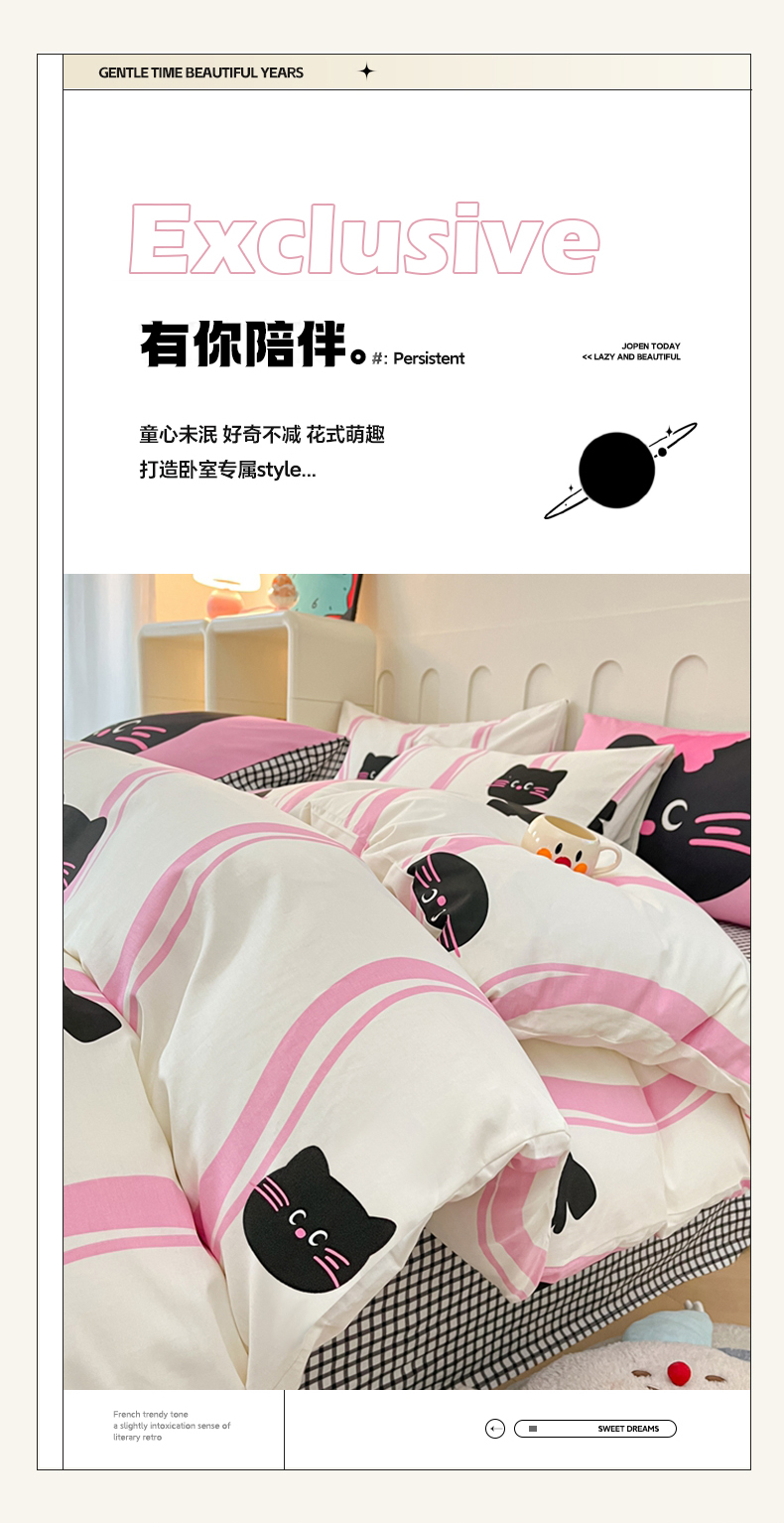 商品名称:呗旺鹿 2024新款舒适亲肤全棉40支大平网定位枕萌趣印花卡通四件套 小黑猫