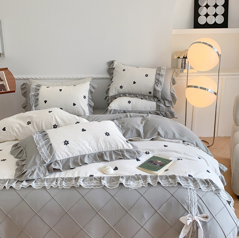 吾欢心 2025新款蝴蝶结款韩版蕾丝花边四件套 爱心花朵