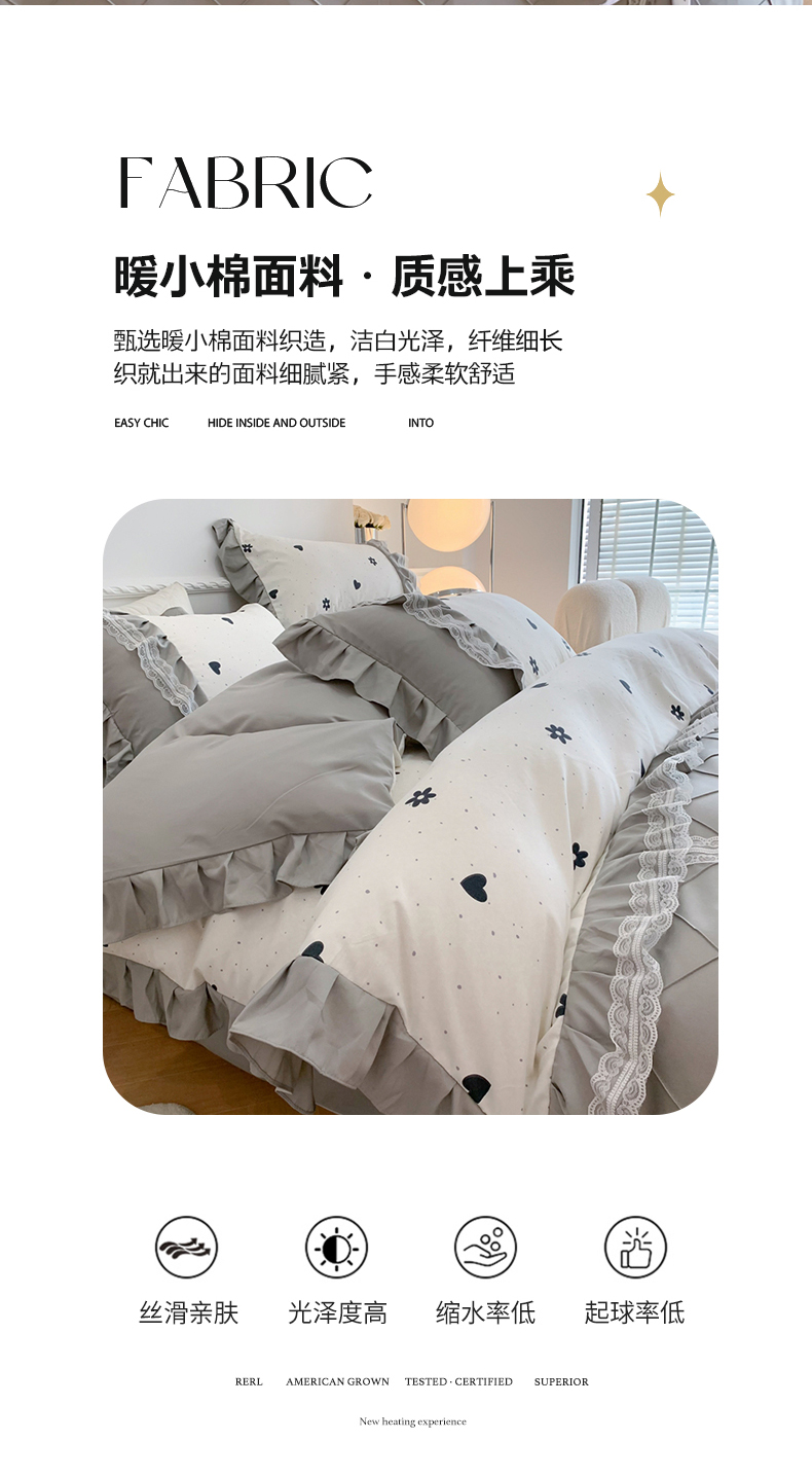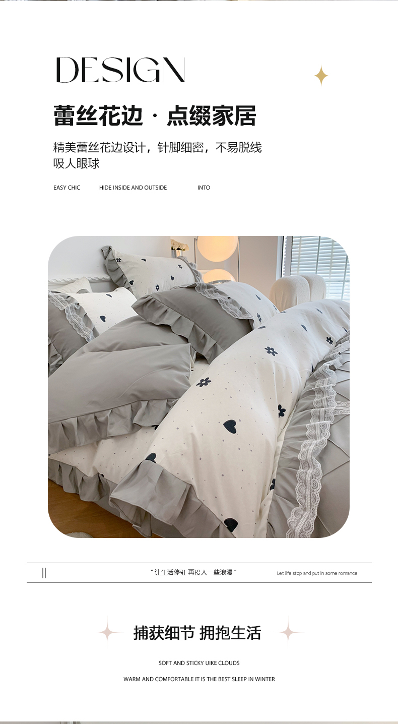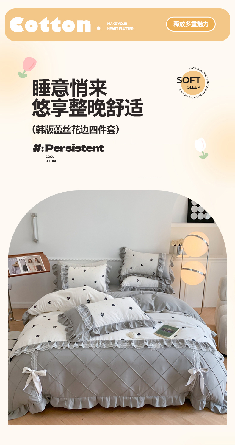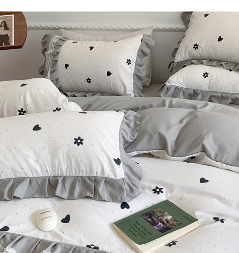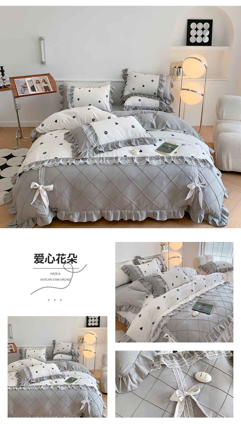 商品名称:吾欢心 2025新款蝴蝶结款韩版蕾丝花边四件套 爱心花朵
