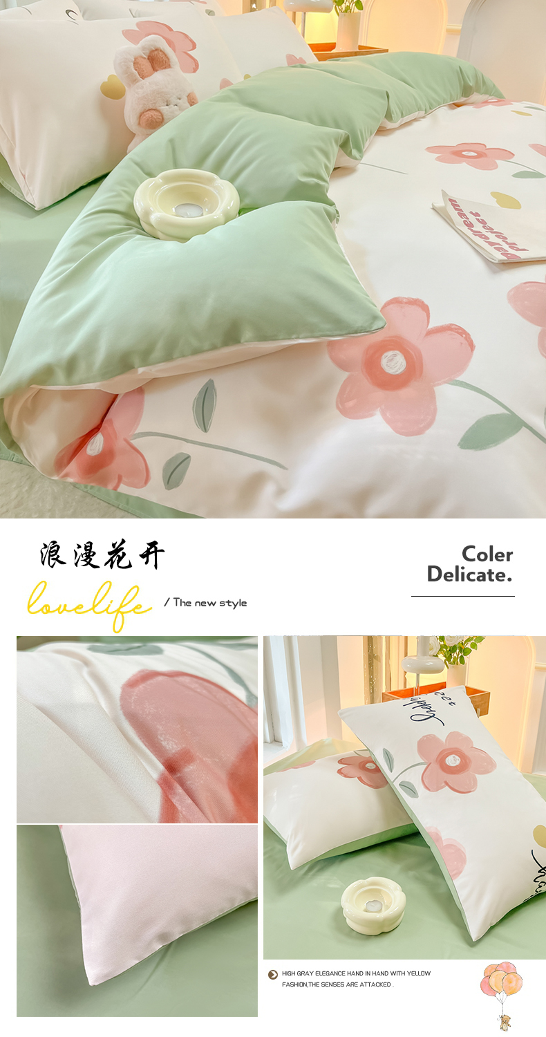 当前位置: 91家纺网 > 商品网购 > 床品套件 > 四件套 > 水洗棉四件套 > yyds网供 2024新款水洗棉印花卡通四件套花卉小清新单件被套 浪漫花开
