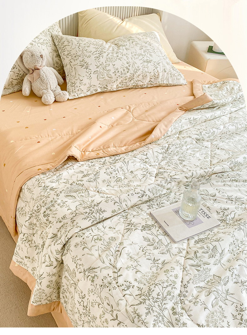 鸣升家纺 A类印花全棉12868棉花夏凉被四件套夏被 雨眠花季(绿)