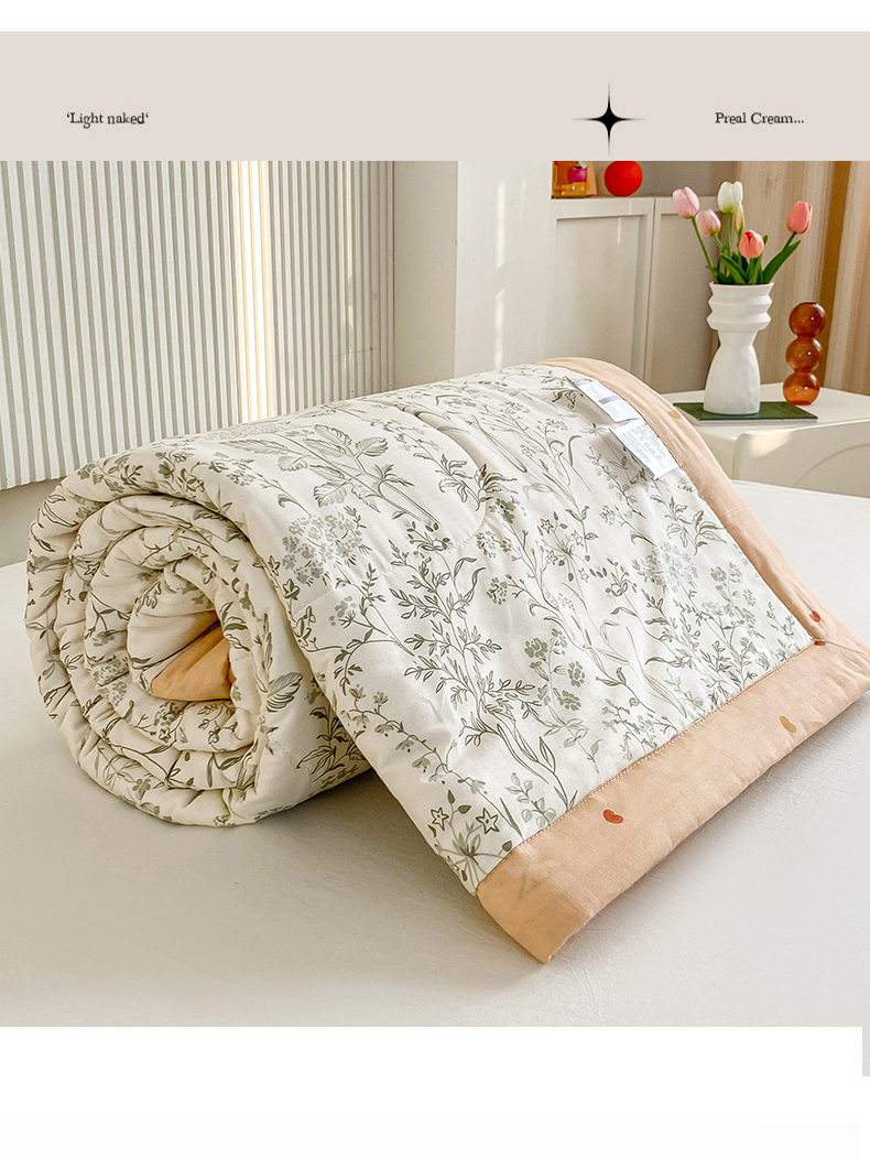 (总)鸣升家纺 2025新款四季款全棉大豆被,菽菽木兰-粉,菽菽木兰-白,菽菽木兰-灰