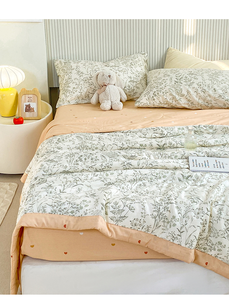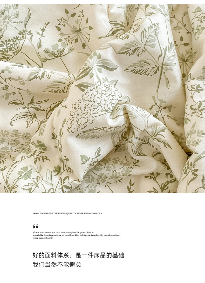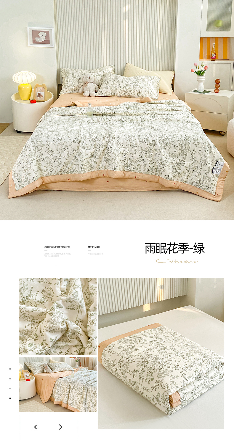 商品名称:鸣升家纺 A类印花全棉12868棉花夏凉被四件套夏被 雨眠花季(绿)