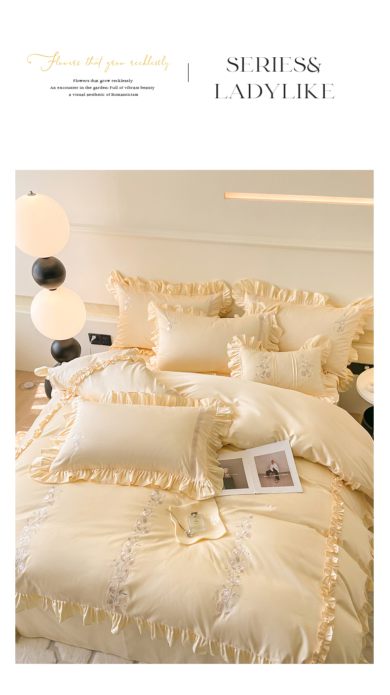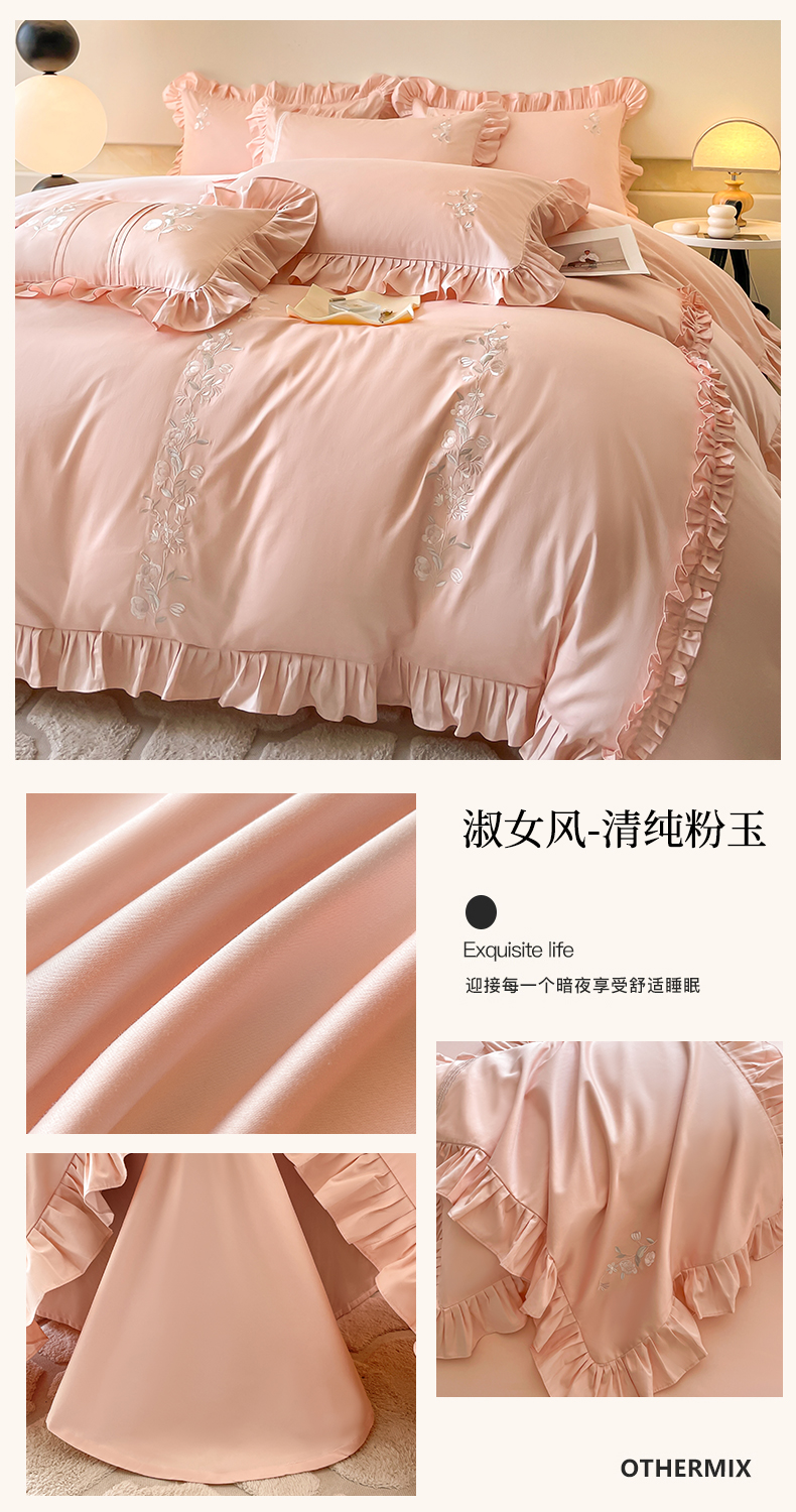 当前位置: 91家纺网 > 商品网购 > 床品套件 > 四件套 > 全棉普通四件套 > (总)蓝米卡夫 2024新品-全棉淑女风刺绣花边高定工艺款