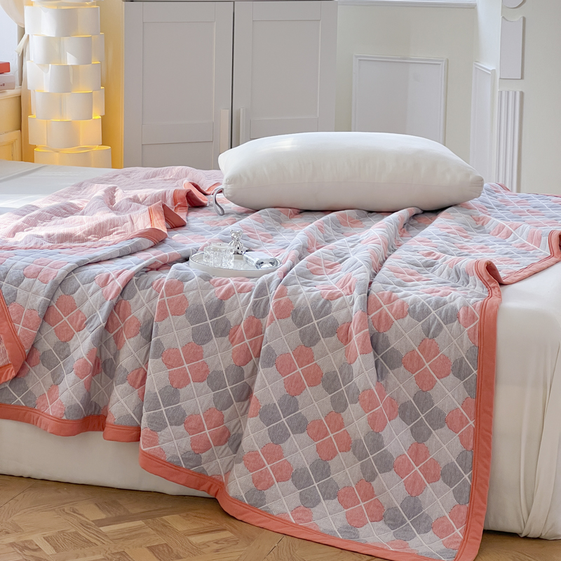 (总)33家纺新款A类全棉高端色织提花毯全棉夏被针织棉盖毯夏凉被空调被,豹纹粉,豹纹灰,花海粉,花海灰,花海蓝,花之舞粉,花之舞绿,菱格橙,菱格粉,菱格蓝,四叶草红,四叶草黄