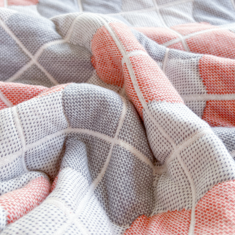 33家纺 新款A类全棉高端色织提花毯全棉夏被针织棉盖毯夏凉被空调被 四叶草红