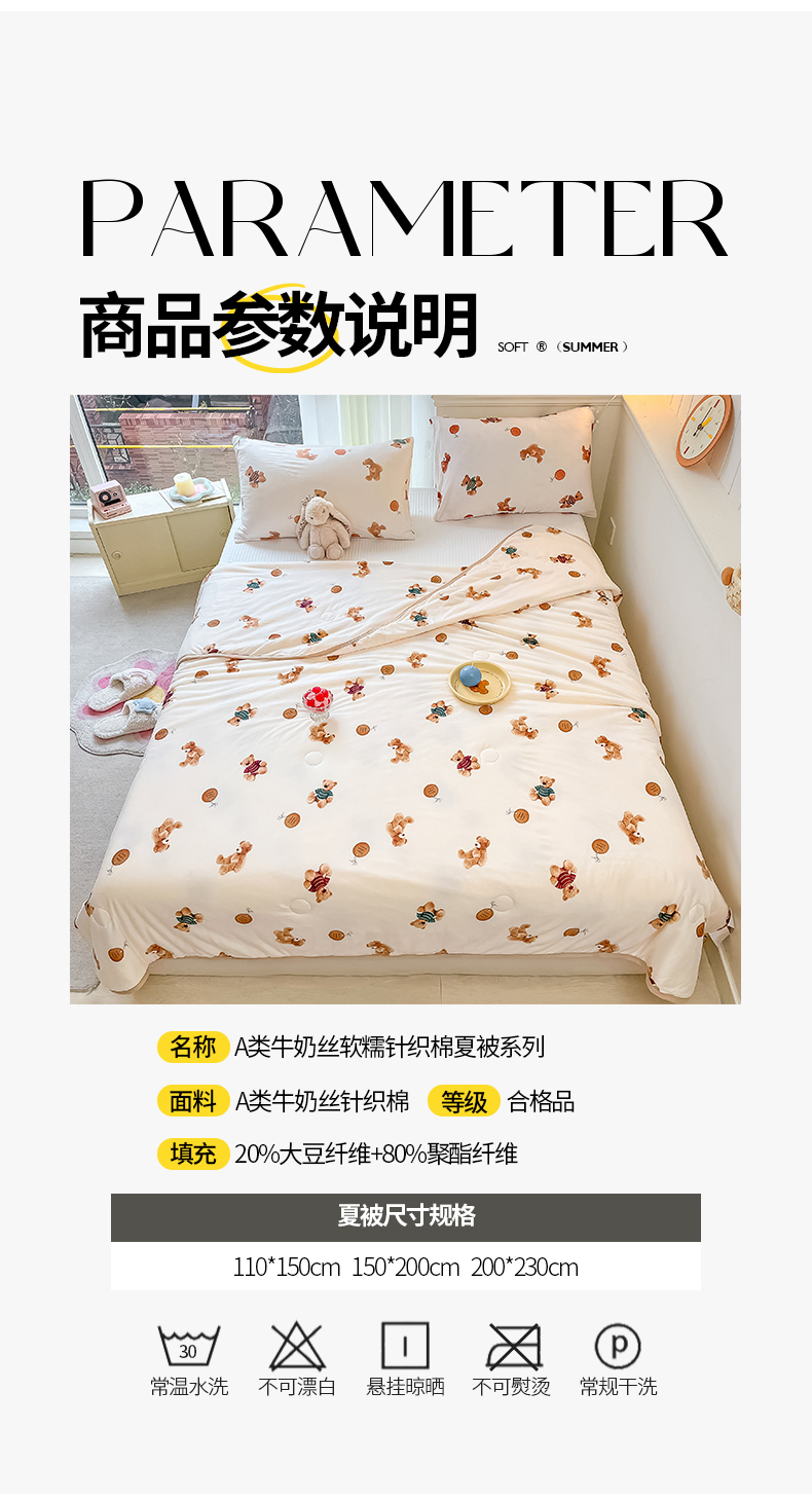 商品名称:(总)桃子家居 2024新款A类高品质牛奶丝软糯针织棉夏被