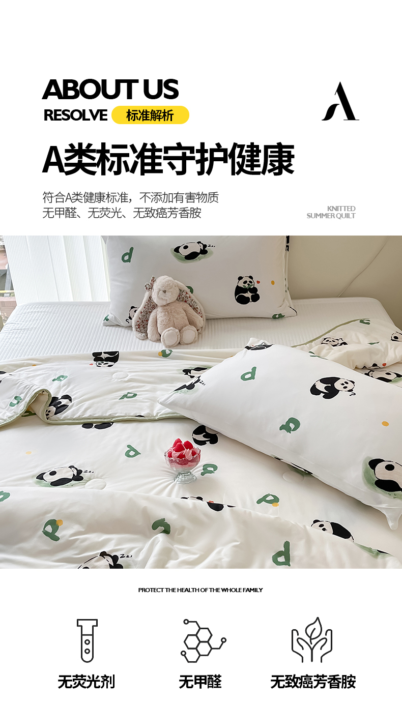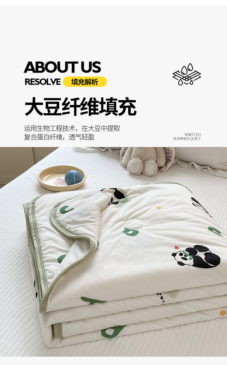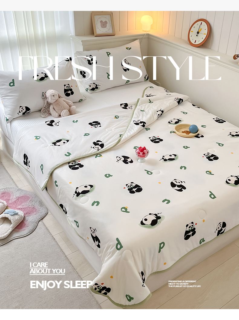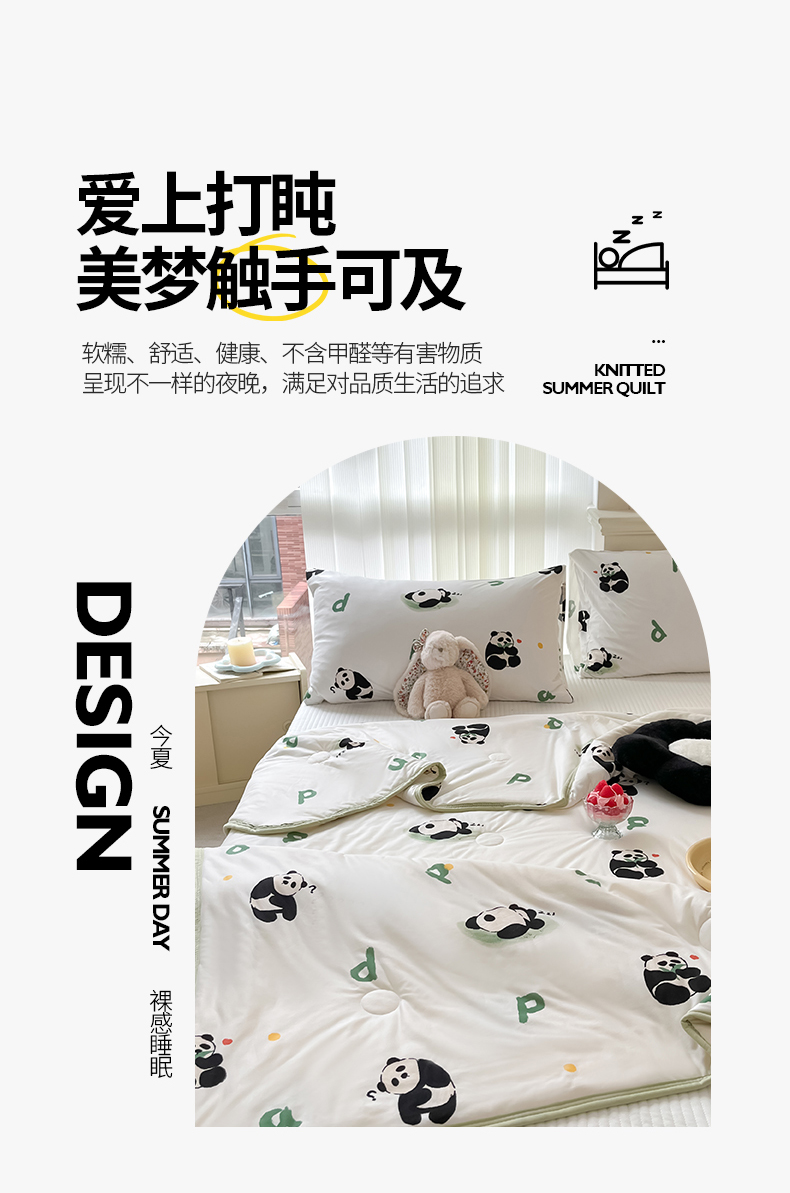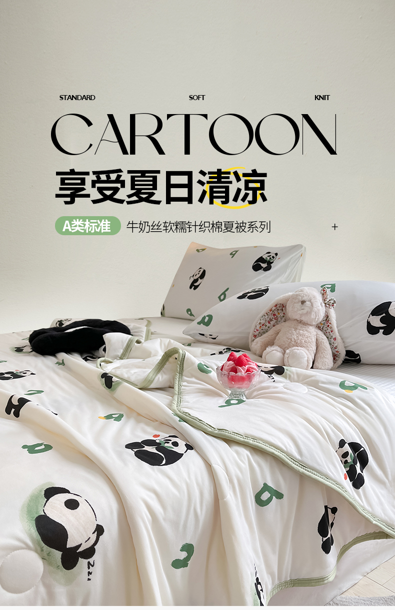 桃子家居 2024新款A类高品质牛奶丝软糯针织棉夏被 针织棉-字母熊猫仔