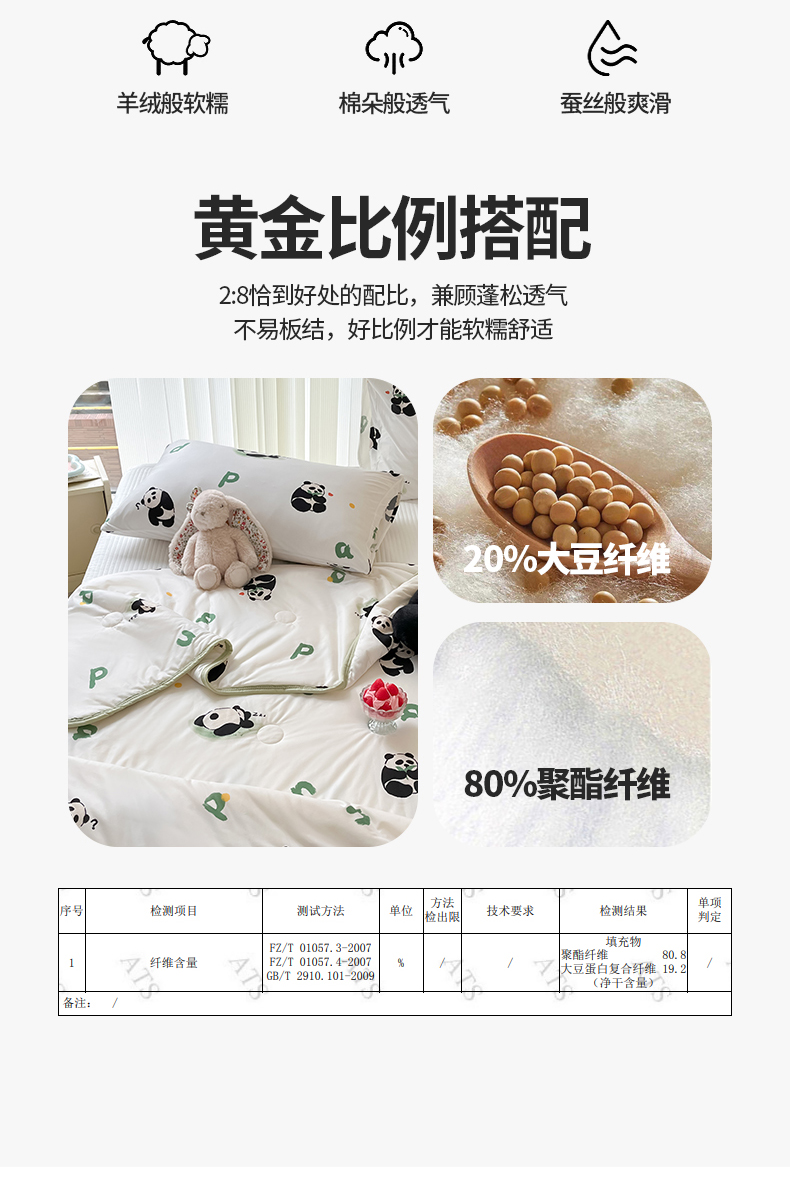 商品名称:桃子家居 2024新款A类高品质牛奶丝软糯针织棉夏被 针织棉-字母熊猫仔