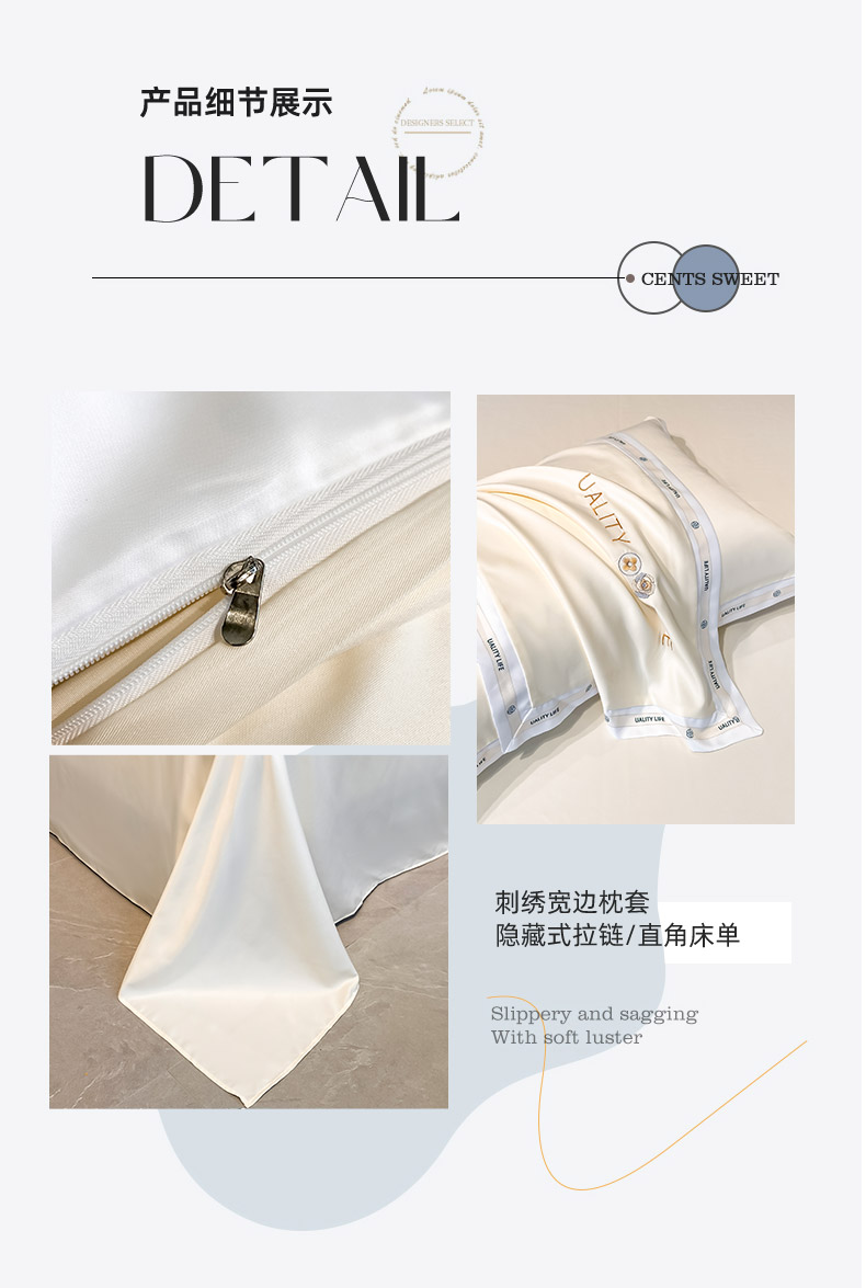 (总)丝印良品 2025新款四季款高端贡缎条纹水洗真丝四件套,白茶绿,景泰蓝,香槟金,香芋粉,象牙白