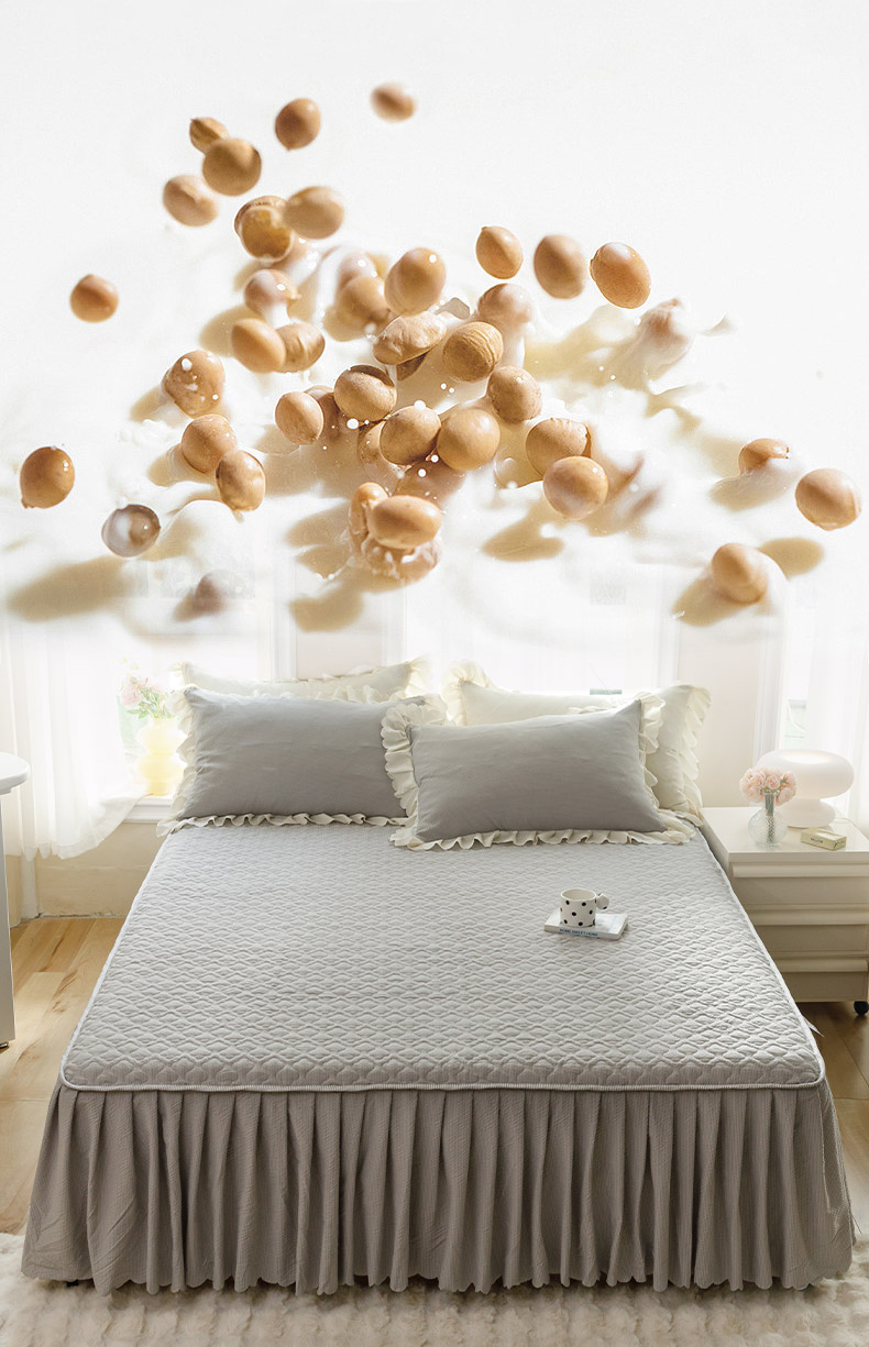 丝印良品 2024新款四季款夹棉泡泡纱床裙床笠被套四件套 浅灰