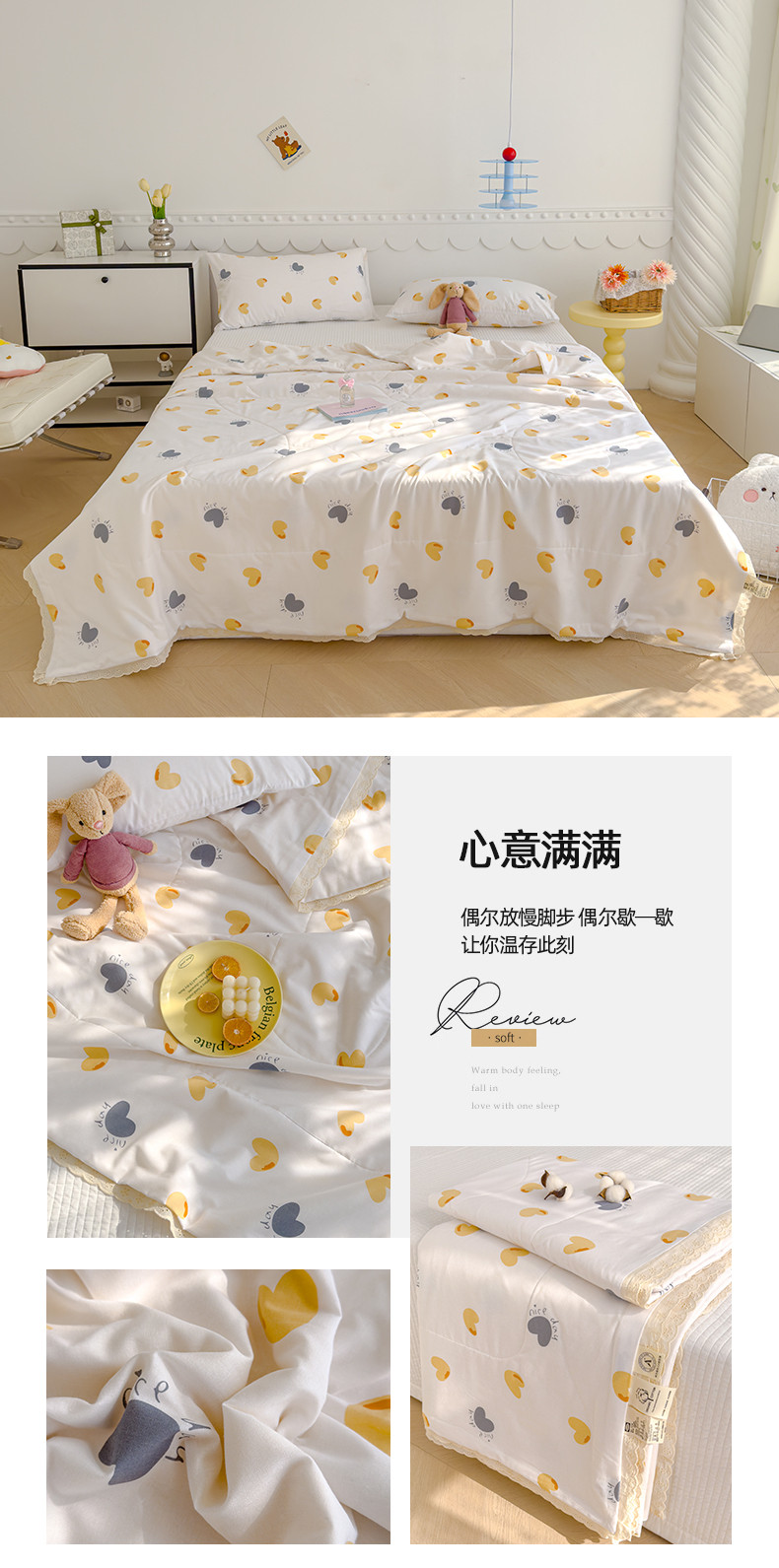 • 91家纺网 家纺一手货源 找家纺 芯恋 2025新款韩版花边里外全棉棉花夏被春秋被 心意满满