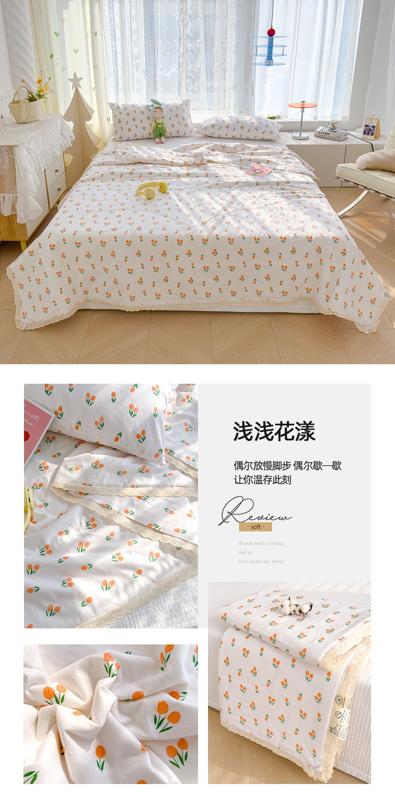 • 91家纺网 家纺一手货源 找家纺 芯恋 2025新款韩版花边里外全棉棉花夏被春秋被 浅浅花漾