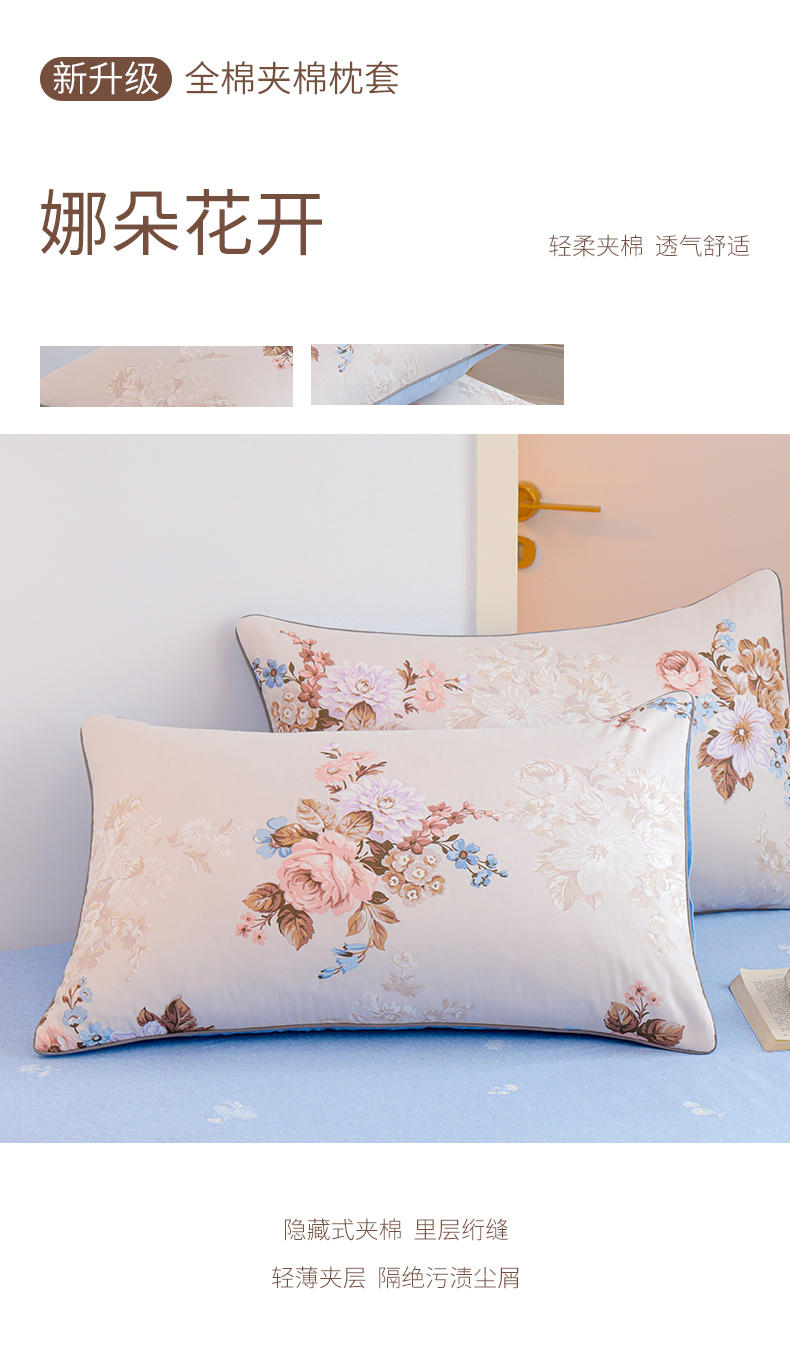 商品名称:元元 2024新款小清新隐藏式夹棉套件单品-夹棉枕套 娜朵花开