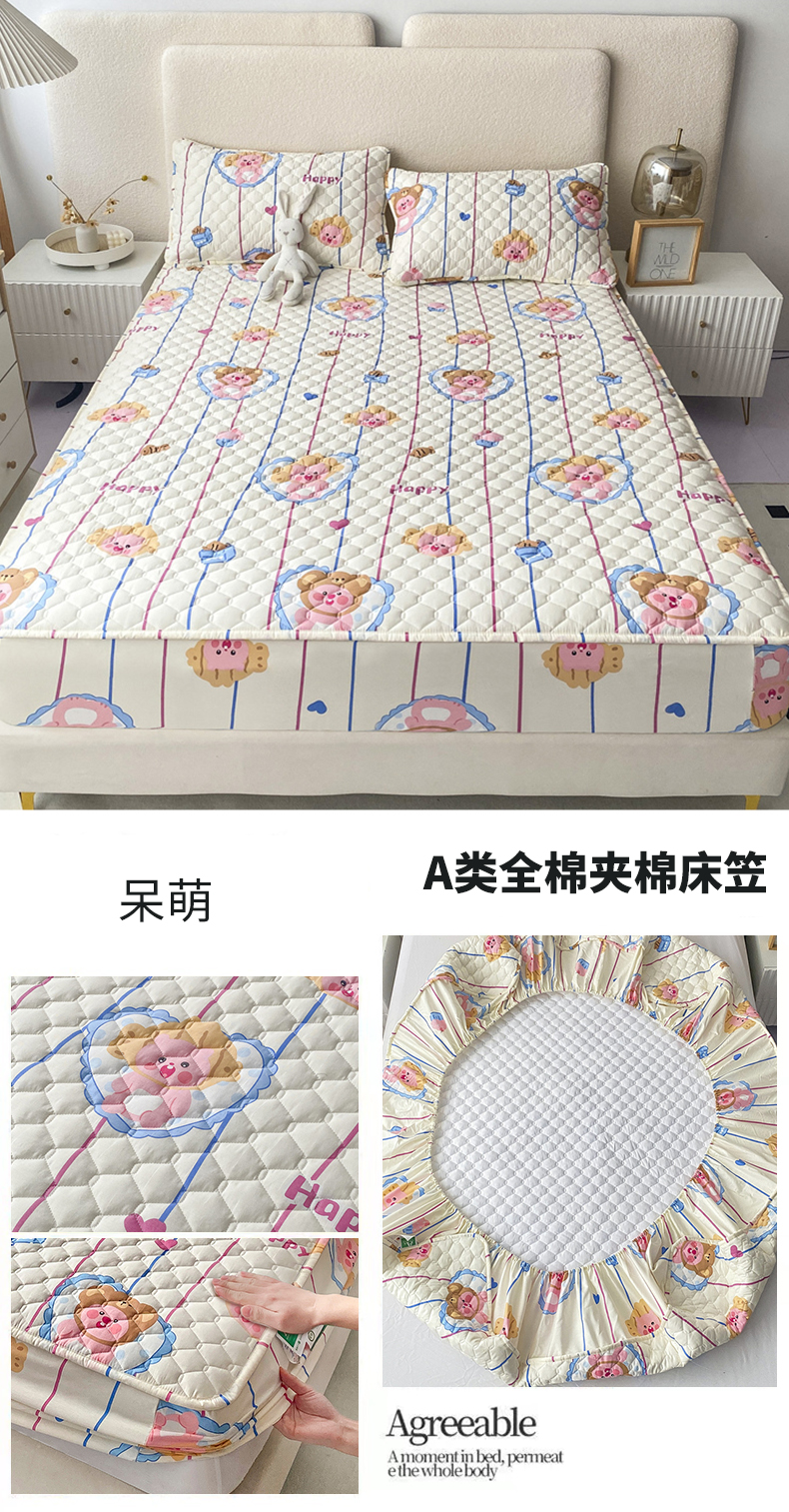 九亭家纺 2024新款A类全棉抗菌夹棉床笠 全棉-呆萌
