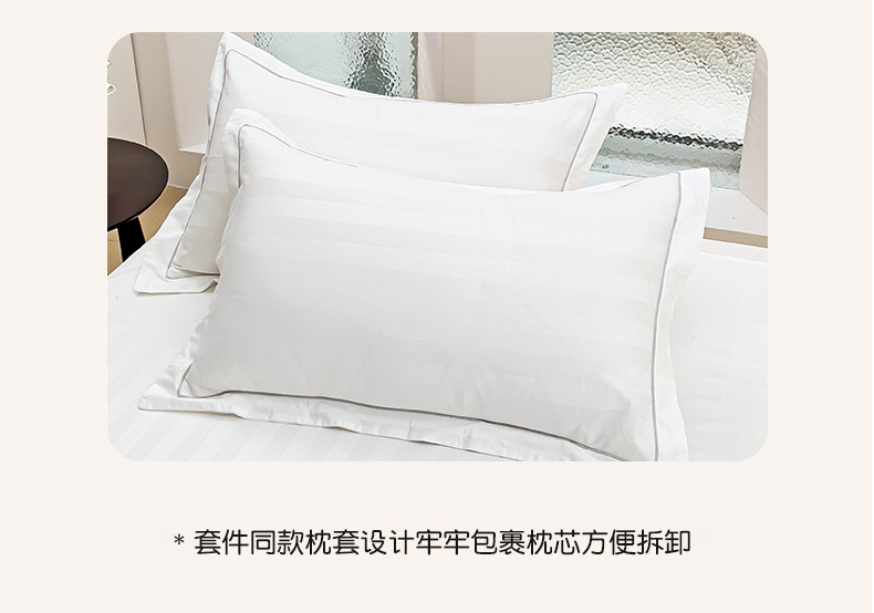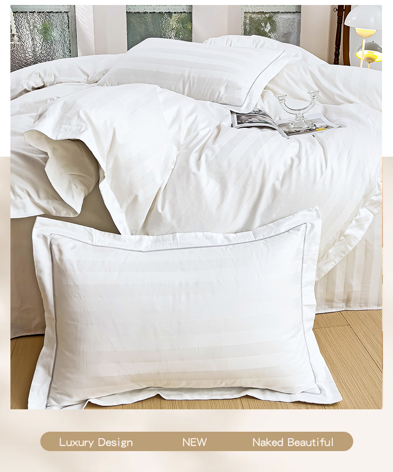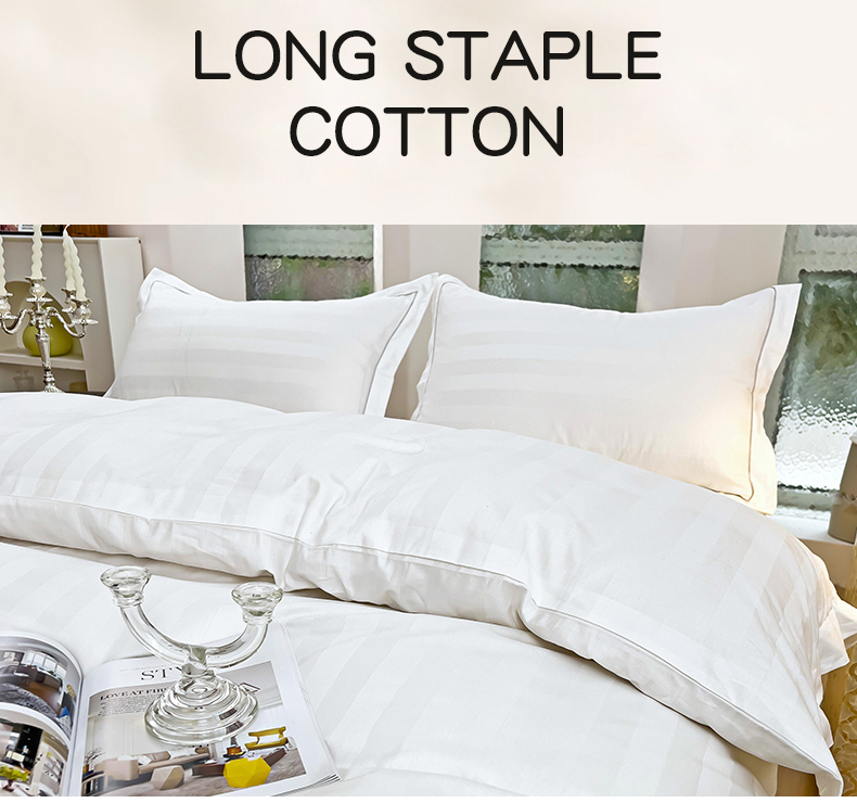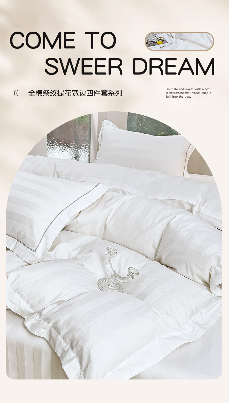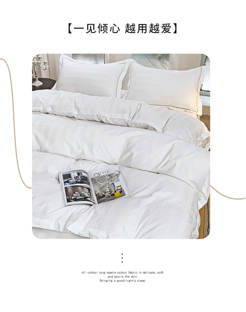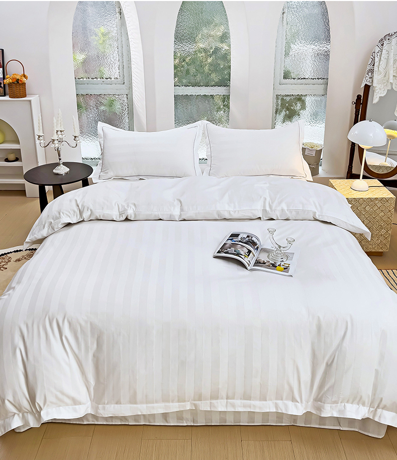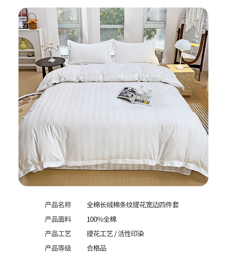 品乐家纺 2024新款60支长绒棉条纹宽边四件套 宽边条纹白
